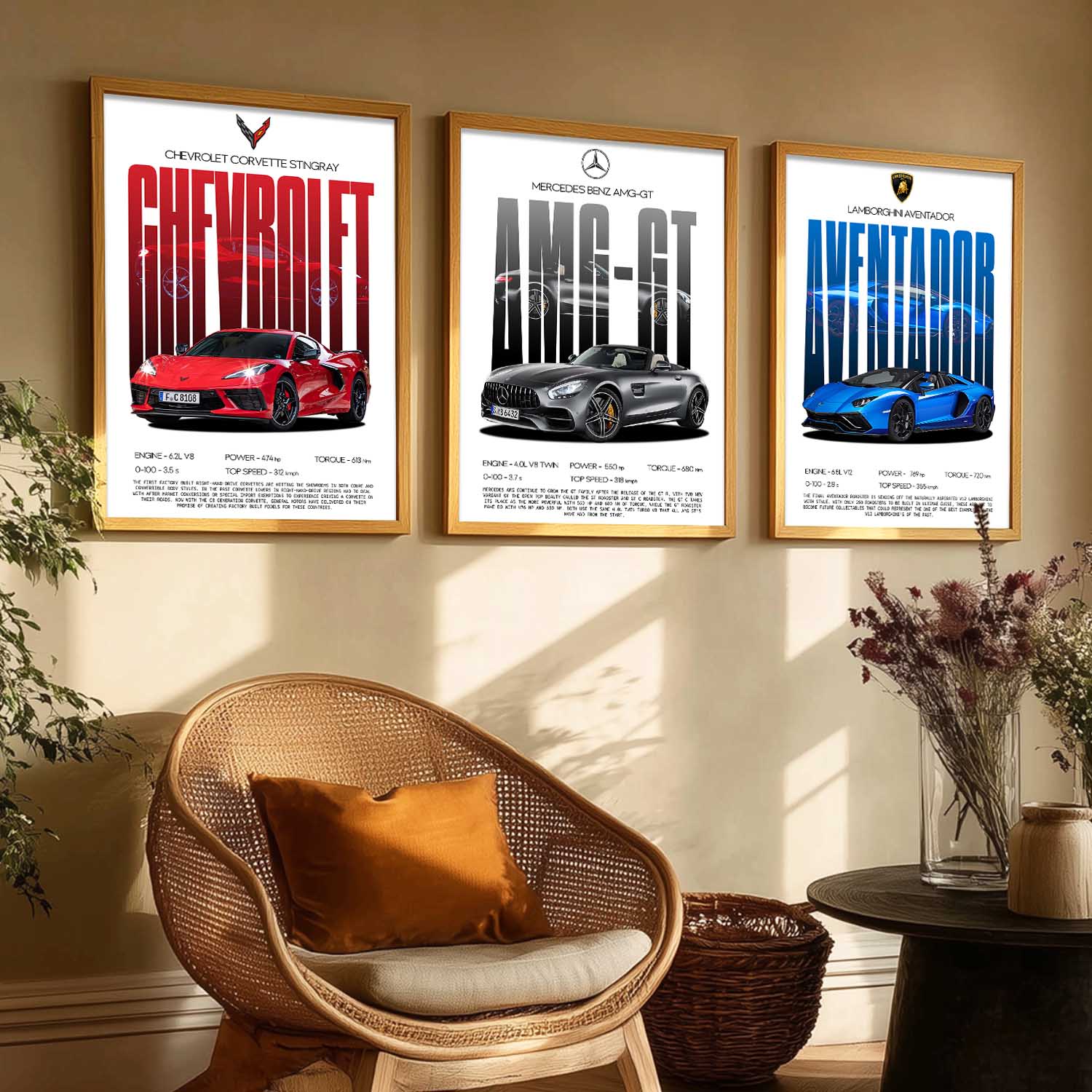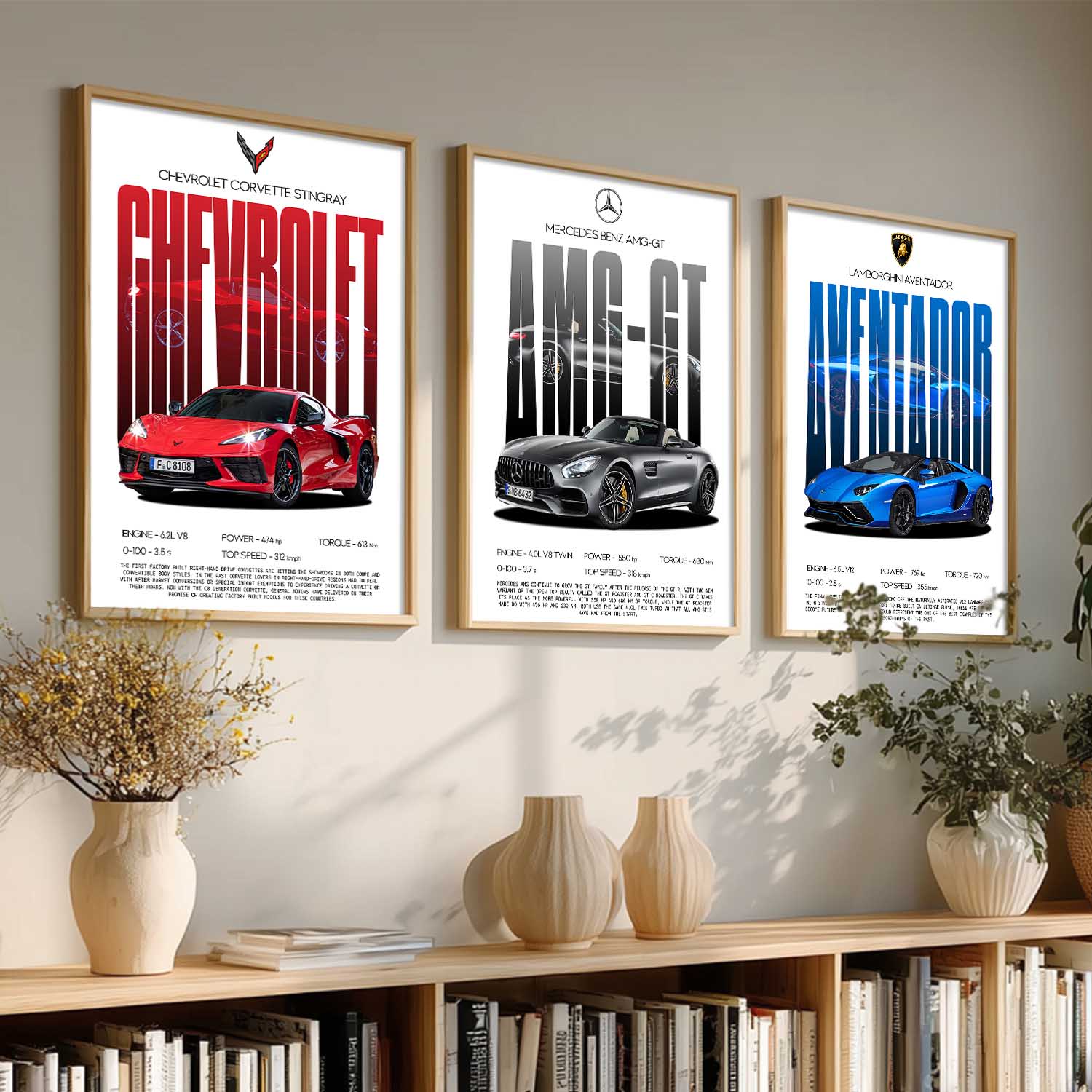 Big Mercedes AMG, Lamborghini Aventador, Chevrolet Car Wall Art Paintings for Living Room Bedroom