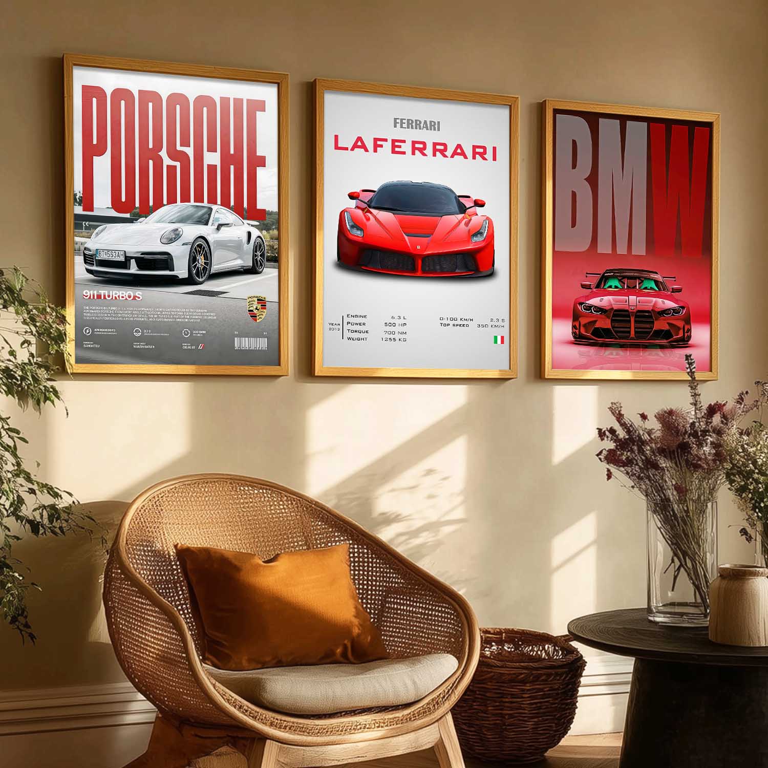 Big Porsche 911, Ferrari Lefarrari, BMW Cars Wall Art Paintings for Living Room Bedroom