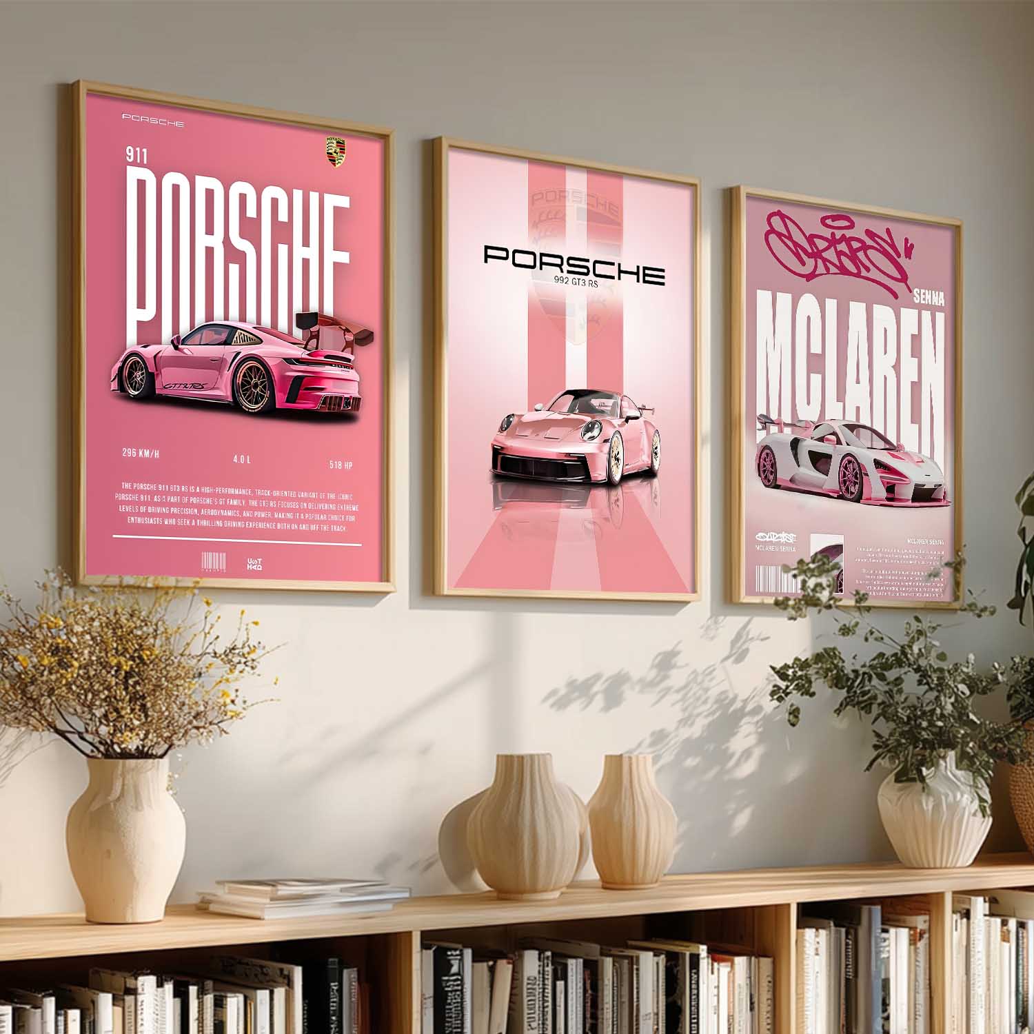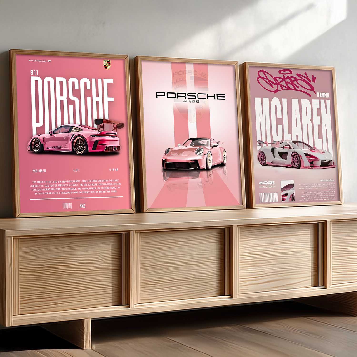 Big Porsche 911 GT3, Porsche 992 GT3, McLaren Senna Cars Wall Art Paintings for Living Room Bedroom