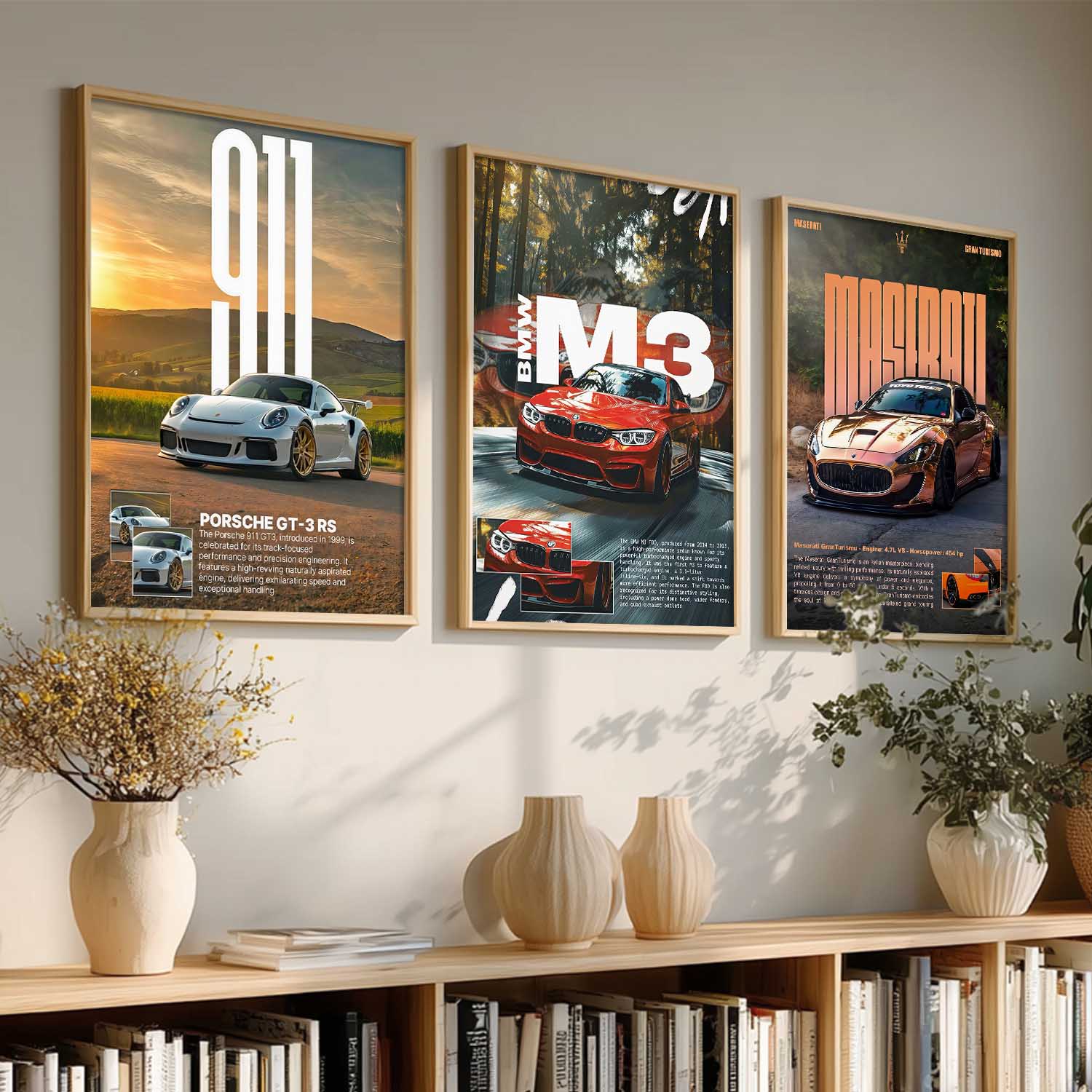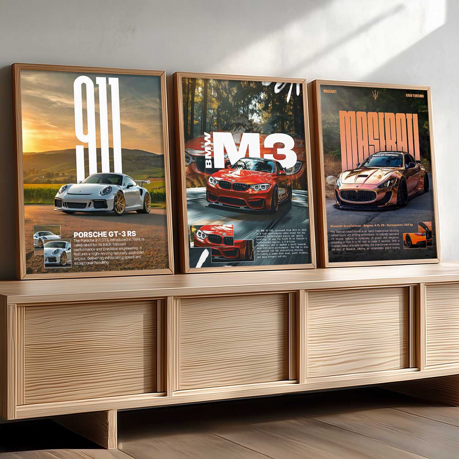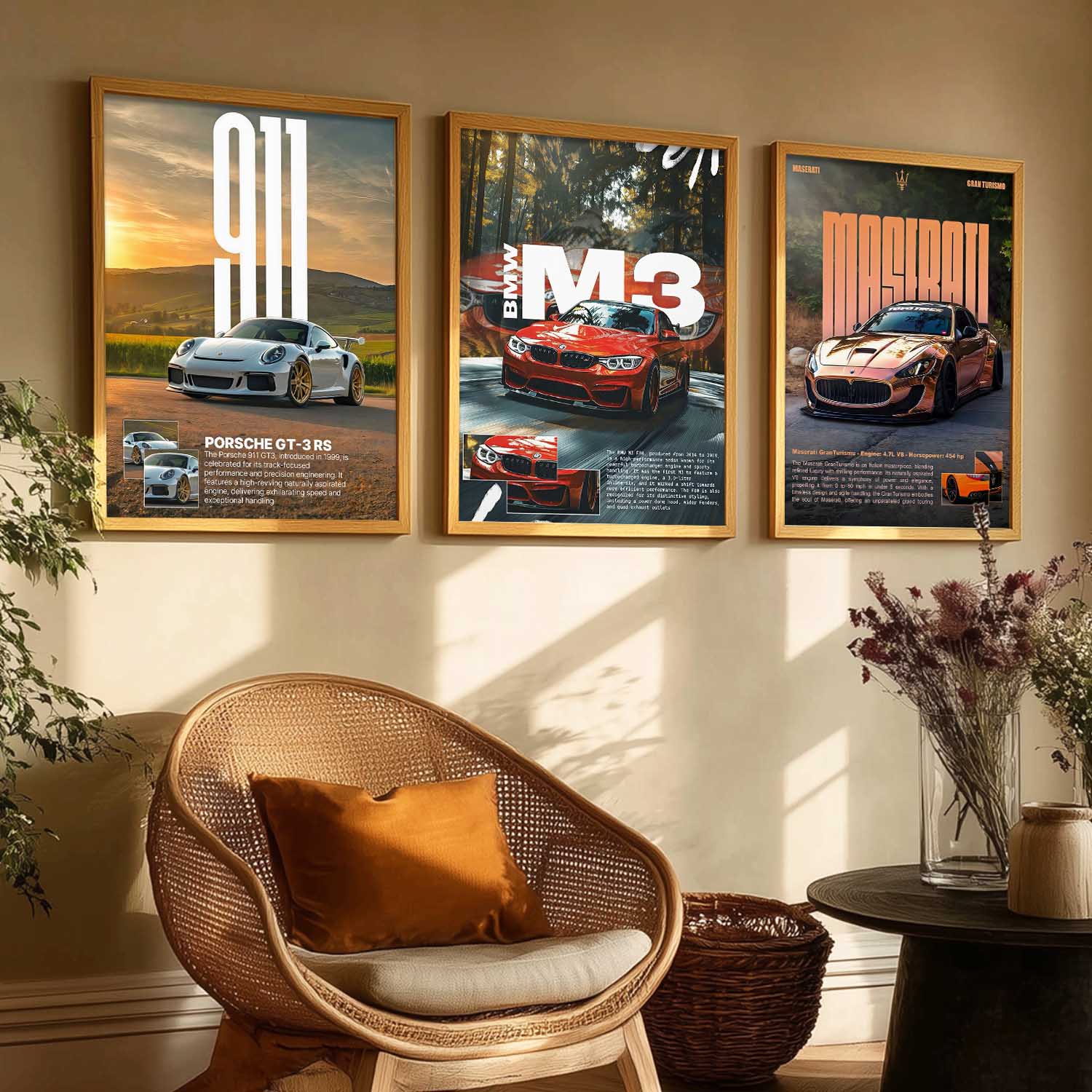 Big Porsche 911 GT3 RS, BMW M3, Maserati Cars Wall Art Paintings for Living Room Bedroom