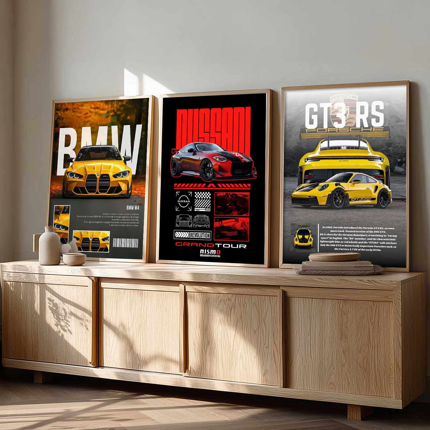 Big BMW M4, Nissan GTR, Porsche GT3 RS Car Wall Art Paintings for Living Room Bedroom