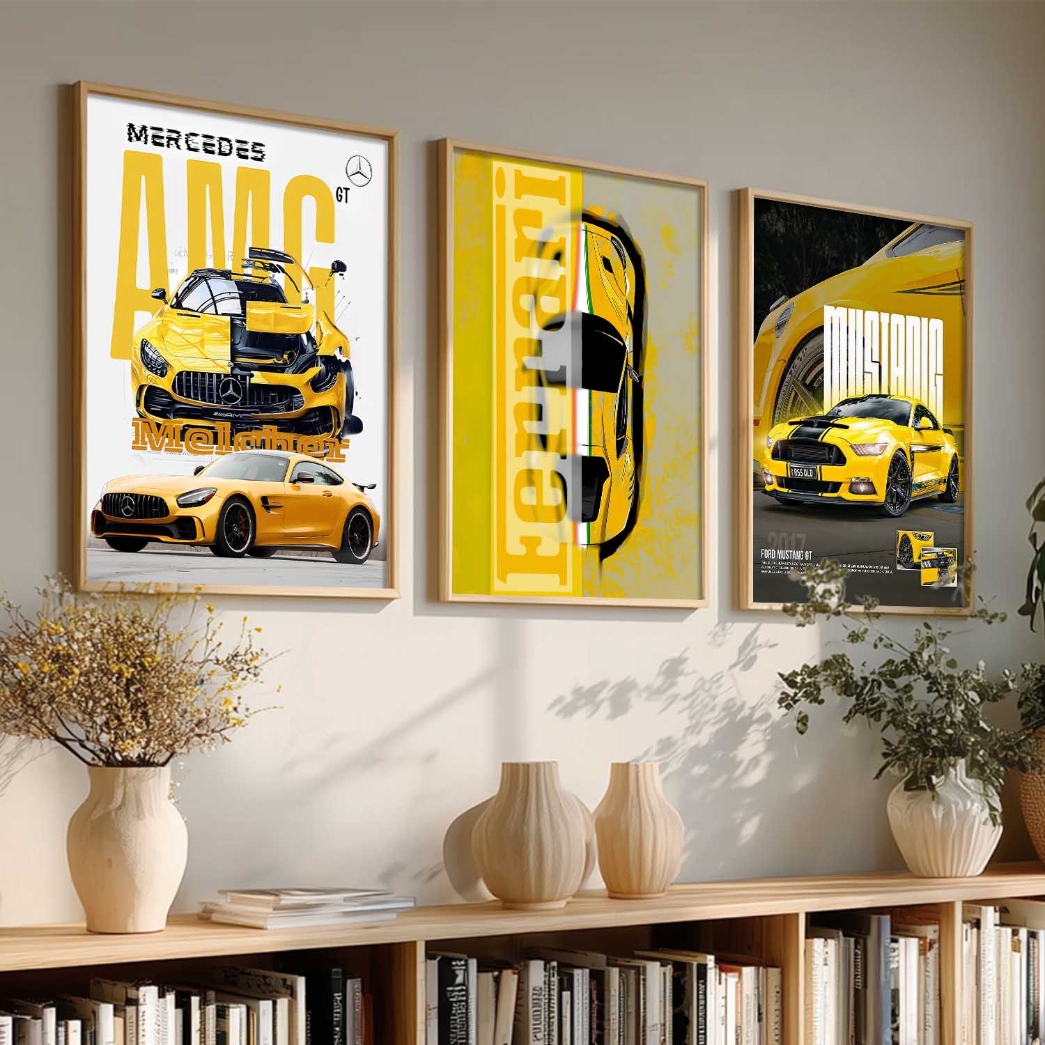 Big Mercedes AMG GT, Mustang, Ferrari Cars Wall Art Paintings for Living Room Bedroom