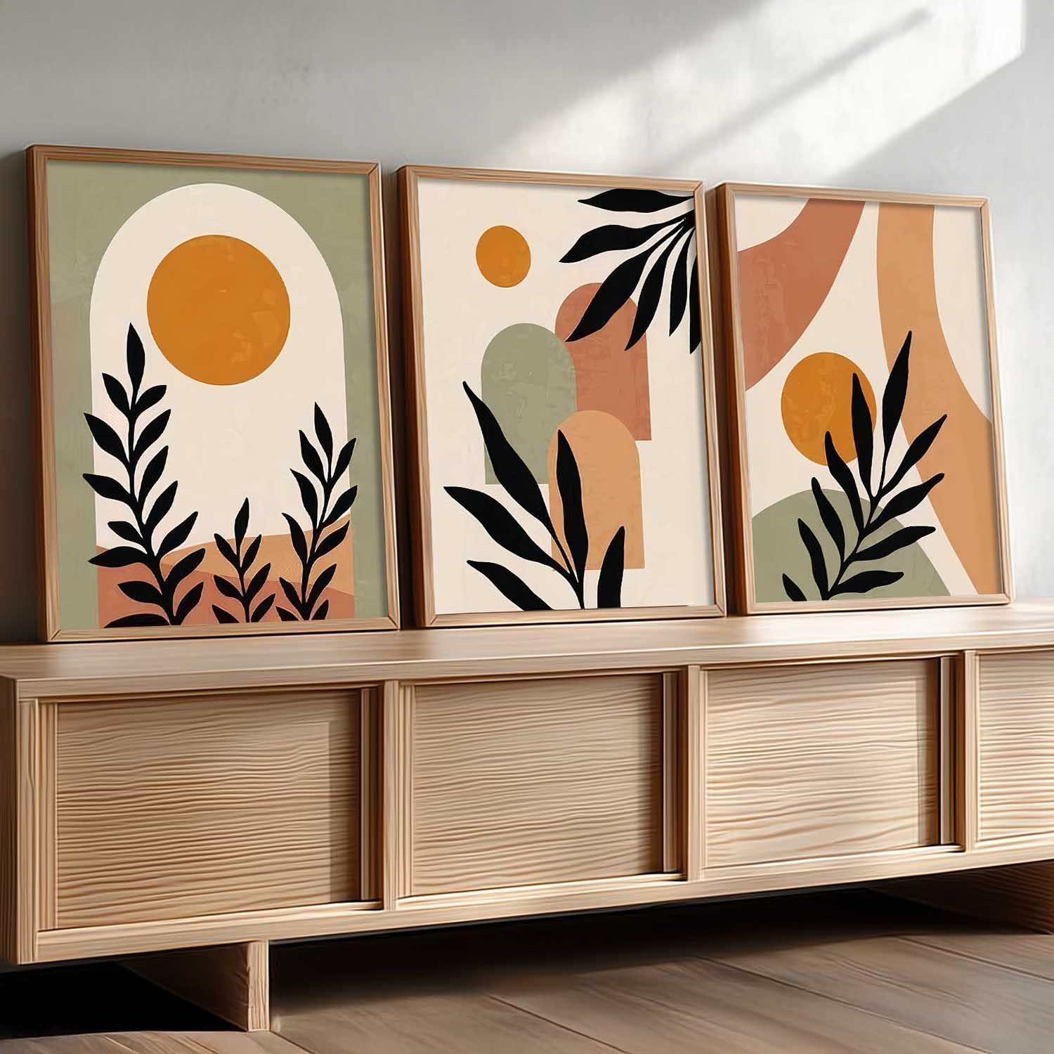 Boho Wall Art Paintings with Frame for Living Room Bedroom