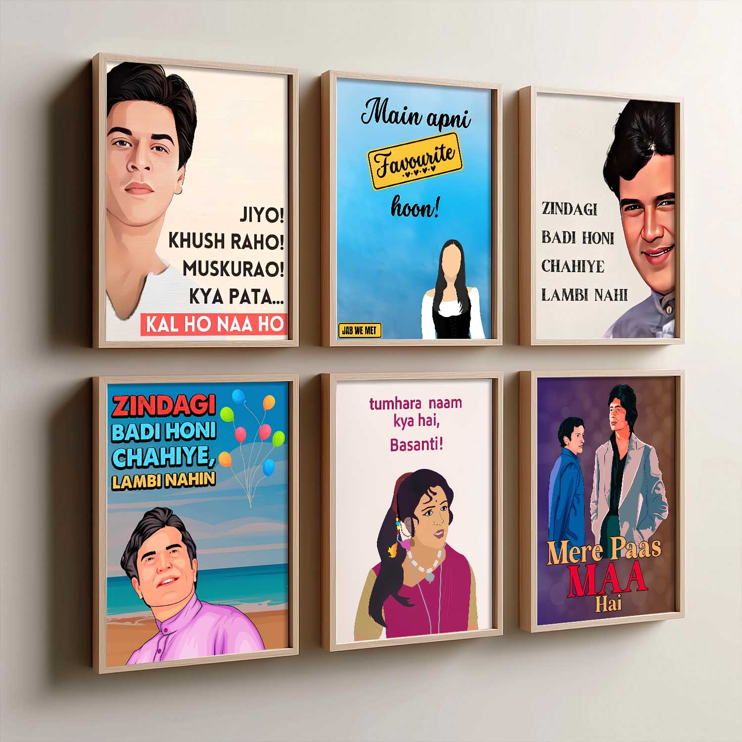 Bollywood Retro Hindi Film Wall Art Paintings with Frame for Living Room Bedroom