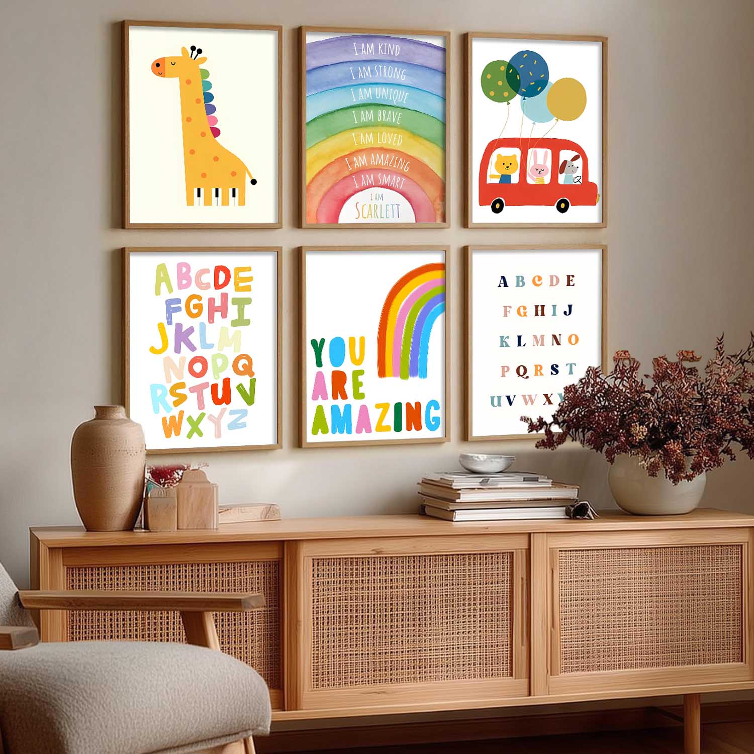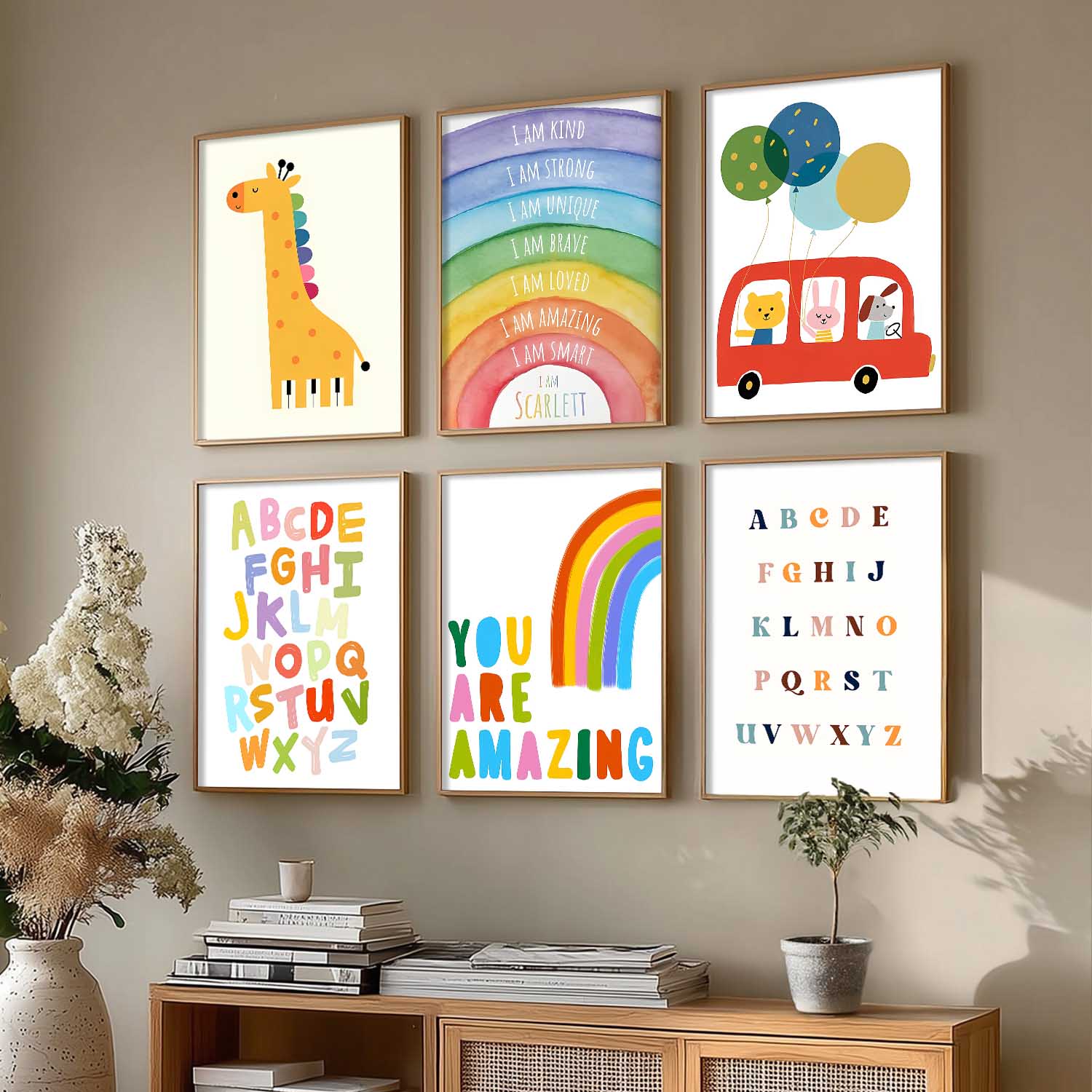 Educational Alphabets Colours Giraffe Wall Art Paintings with Frame for Living Room Bedroom