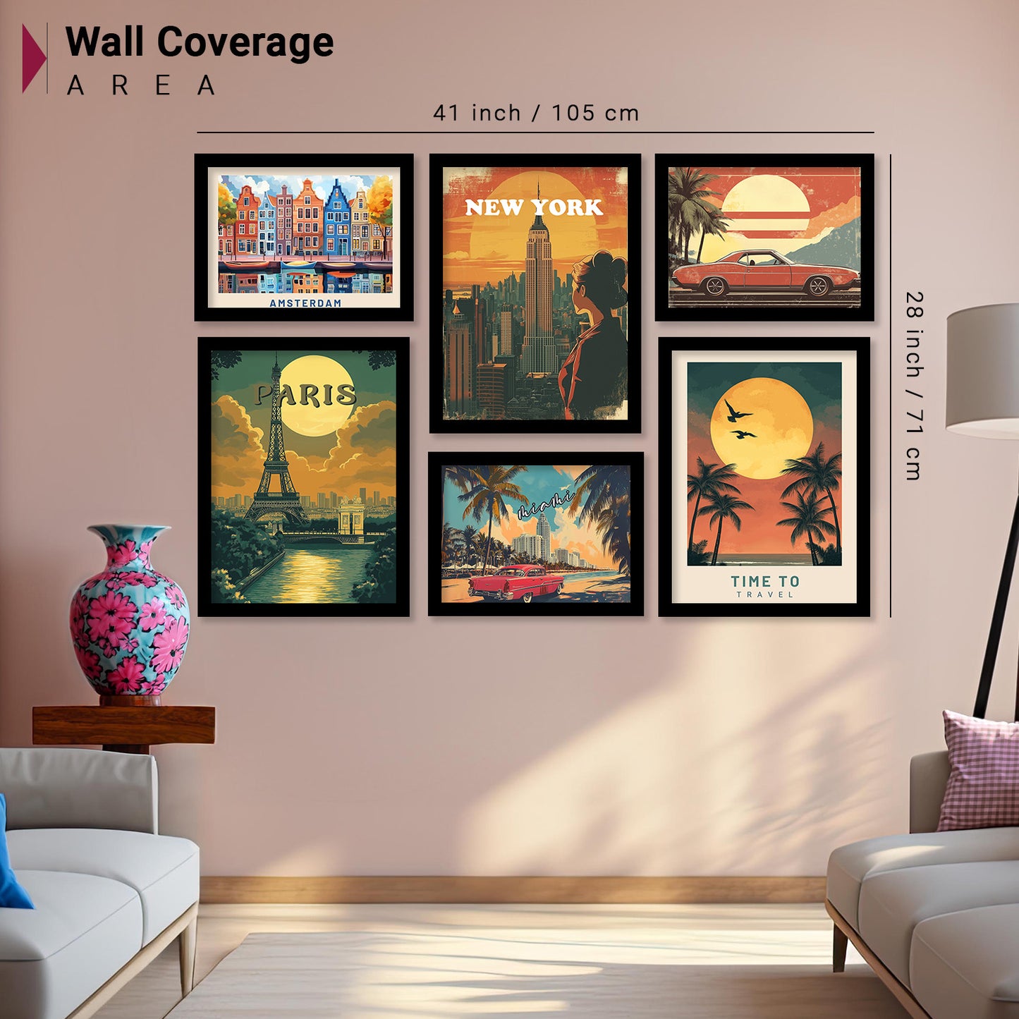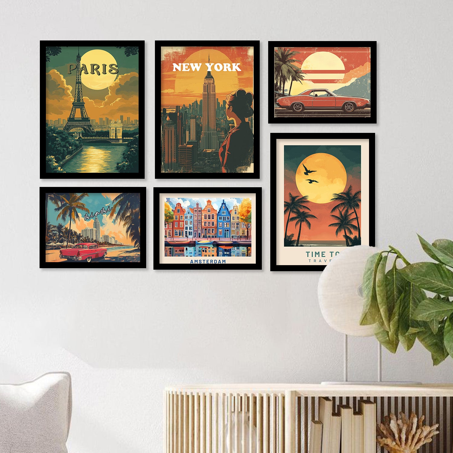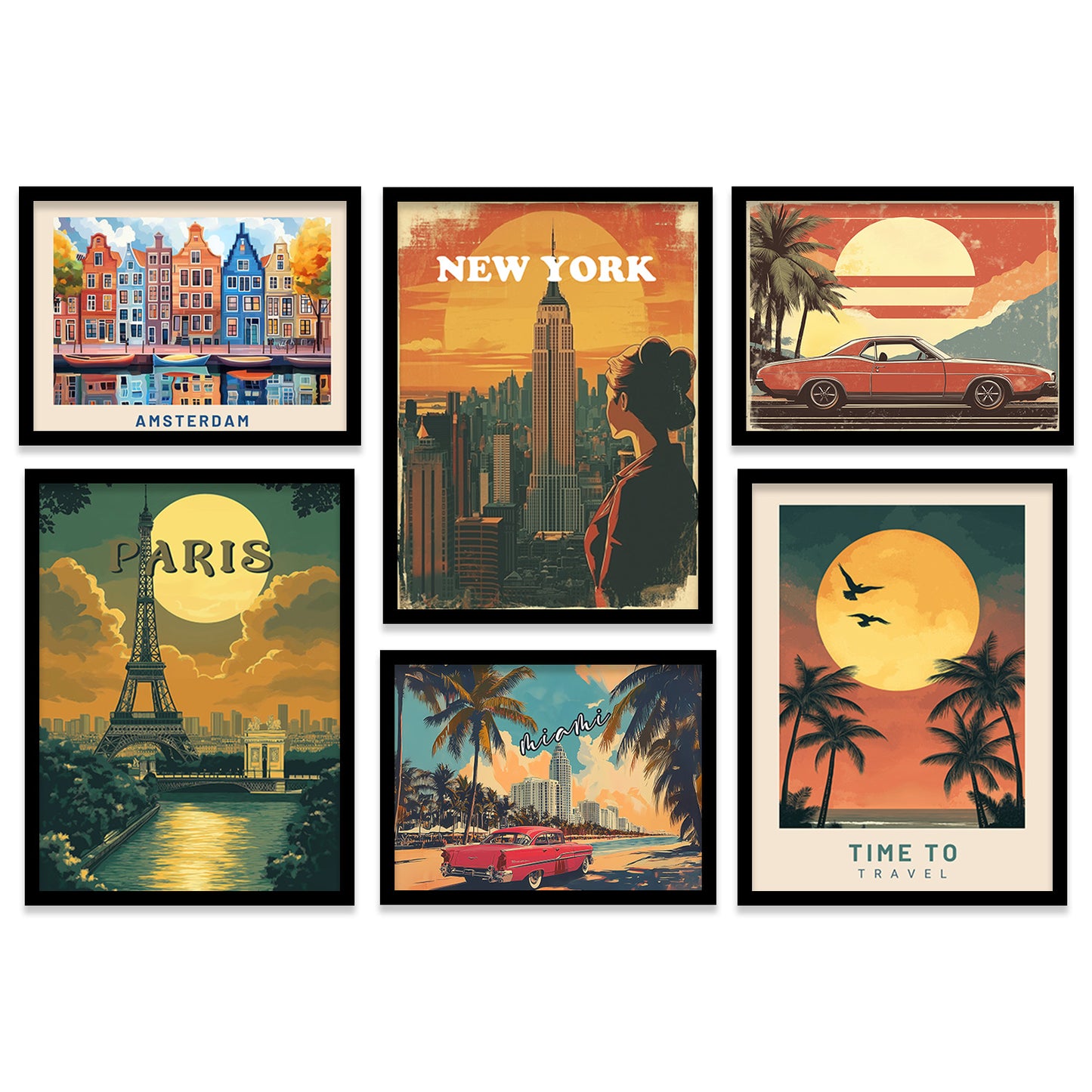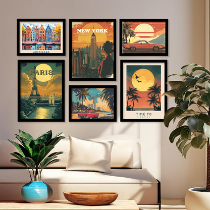 City view Art Prints with Frame for Living Room Bedroom Home and Office Wall Decor Set of 6