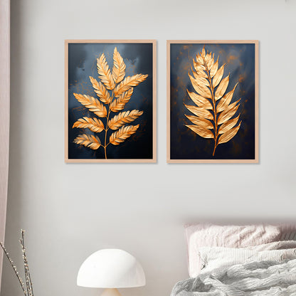 Premium Golden Leaf Wall Decor Prints with Frame for Home Decoration