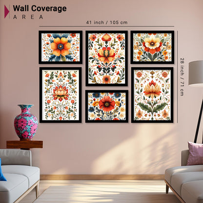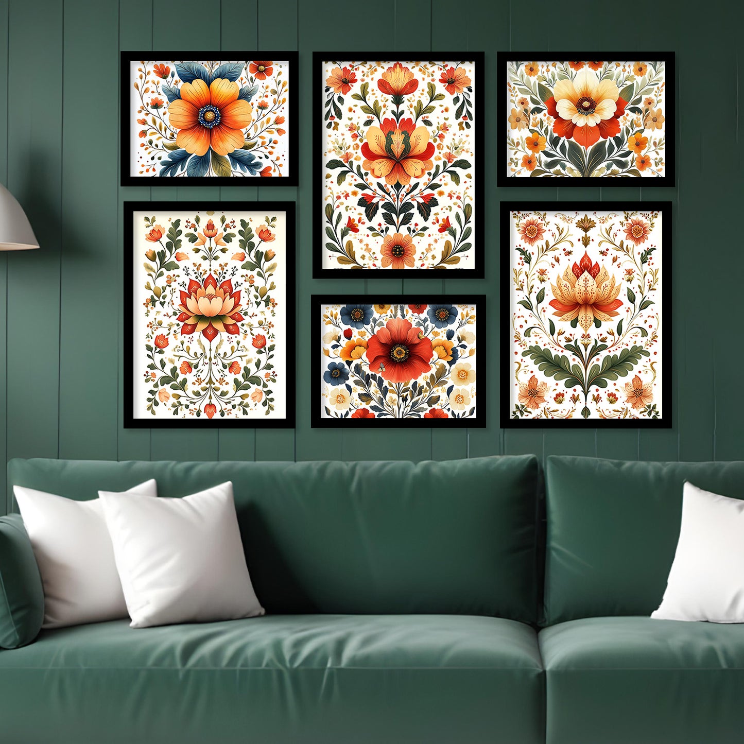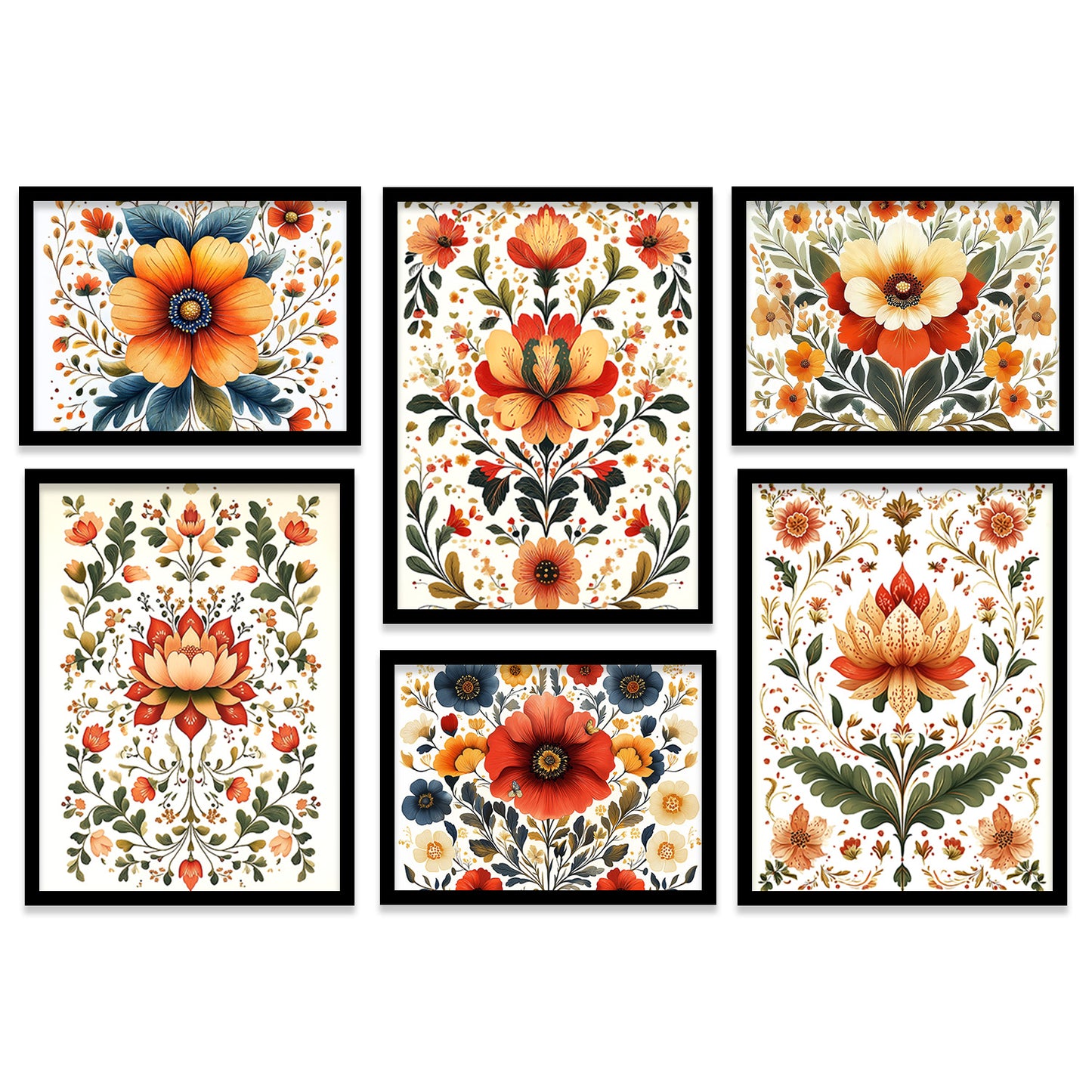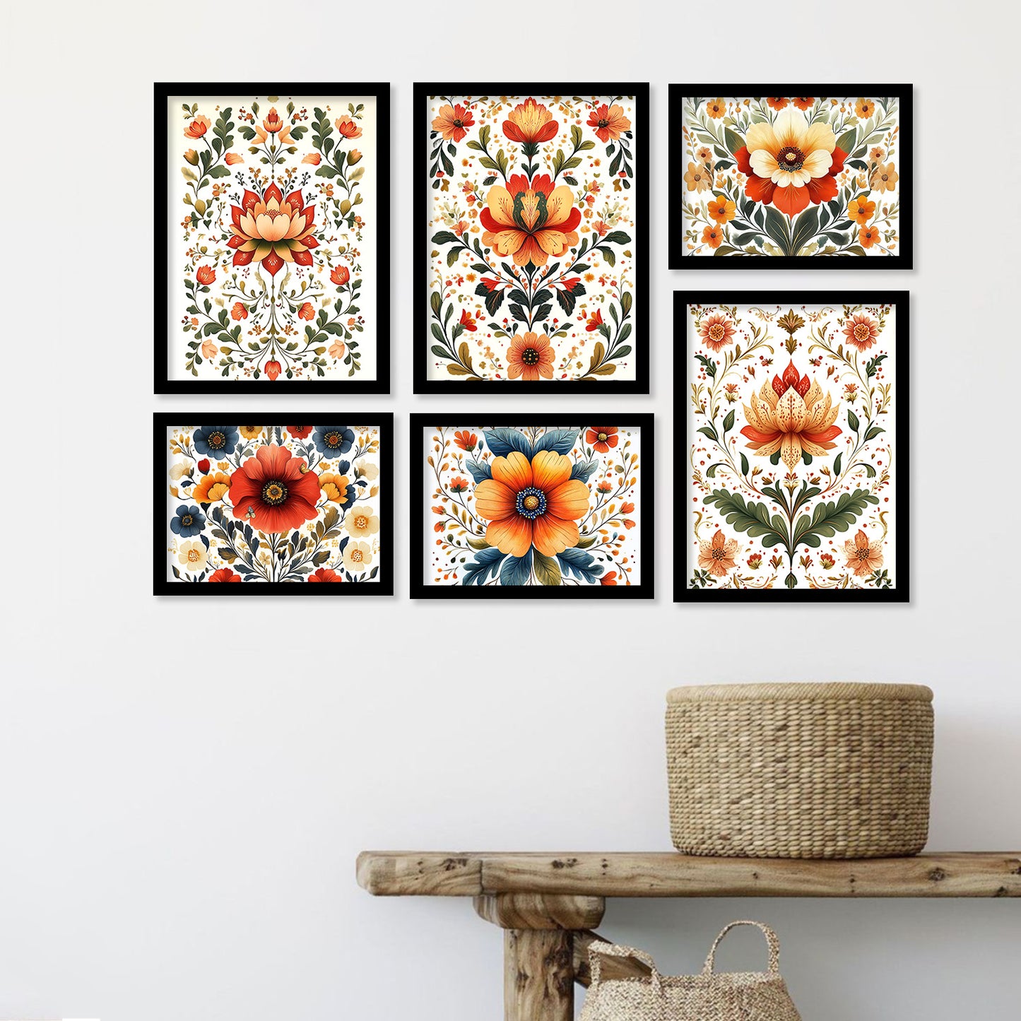 Floral Art Prints with Frame for Living Room Bedroom Home and Office Wall Decor Set of 6