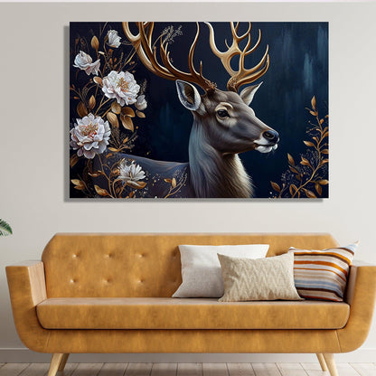 Floral Deer Print - Modern Abstract Art Prints for Living Room Bedroom Wall Decor