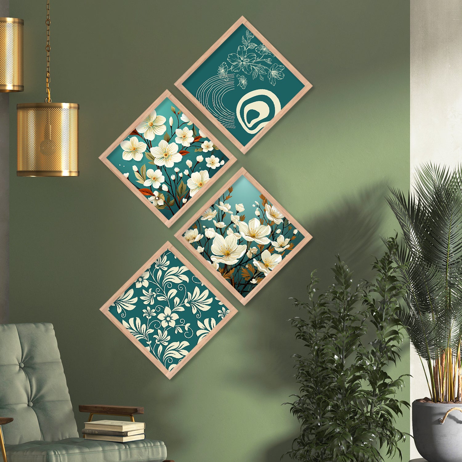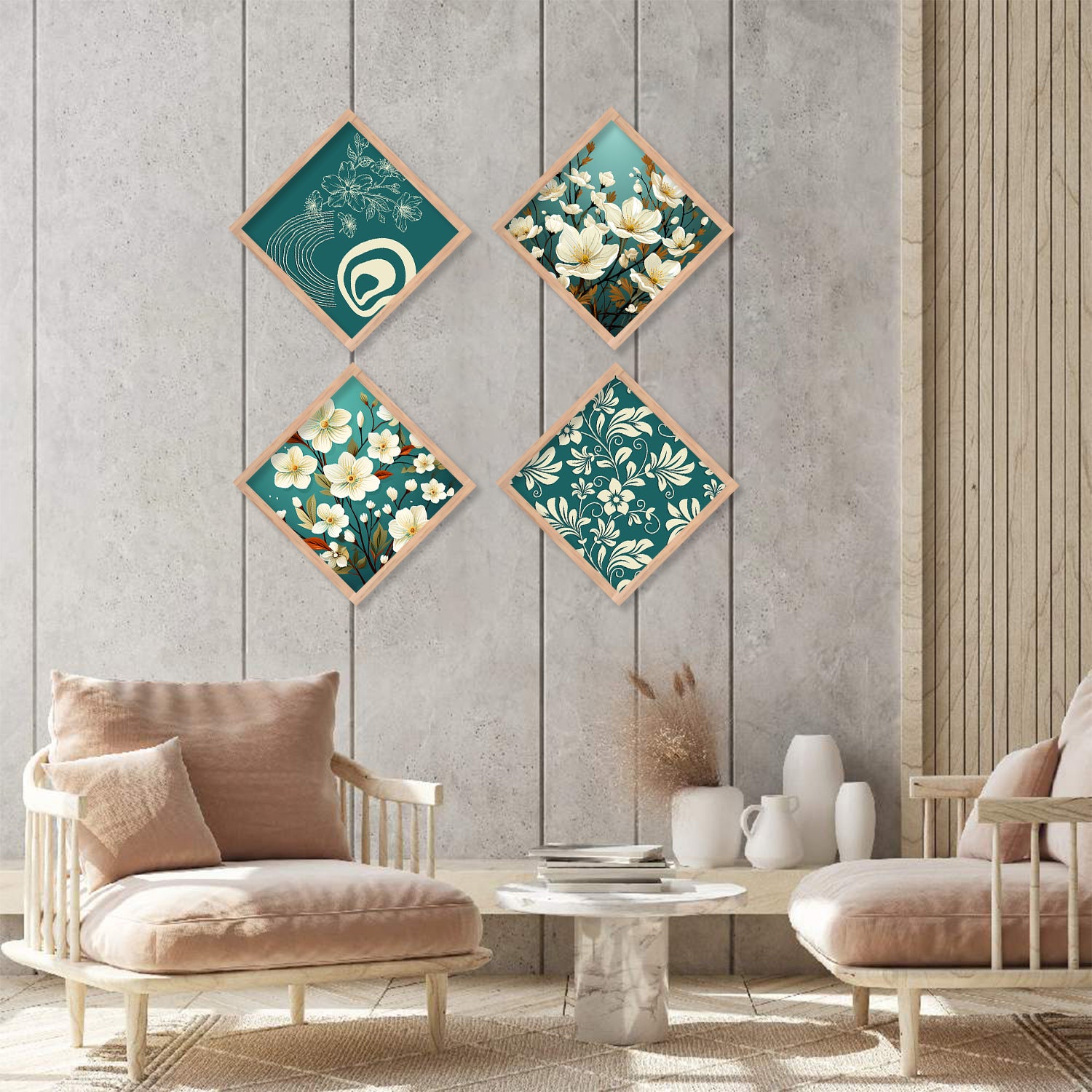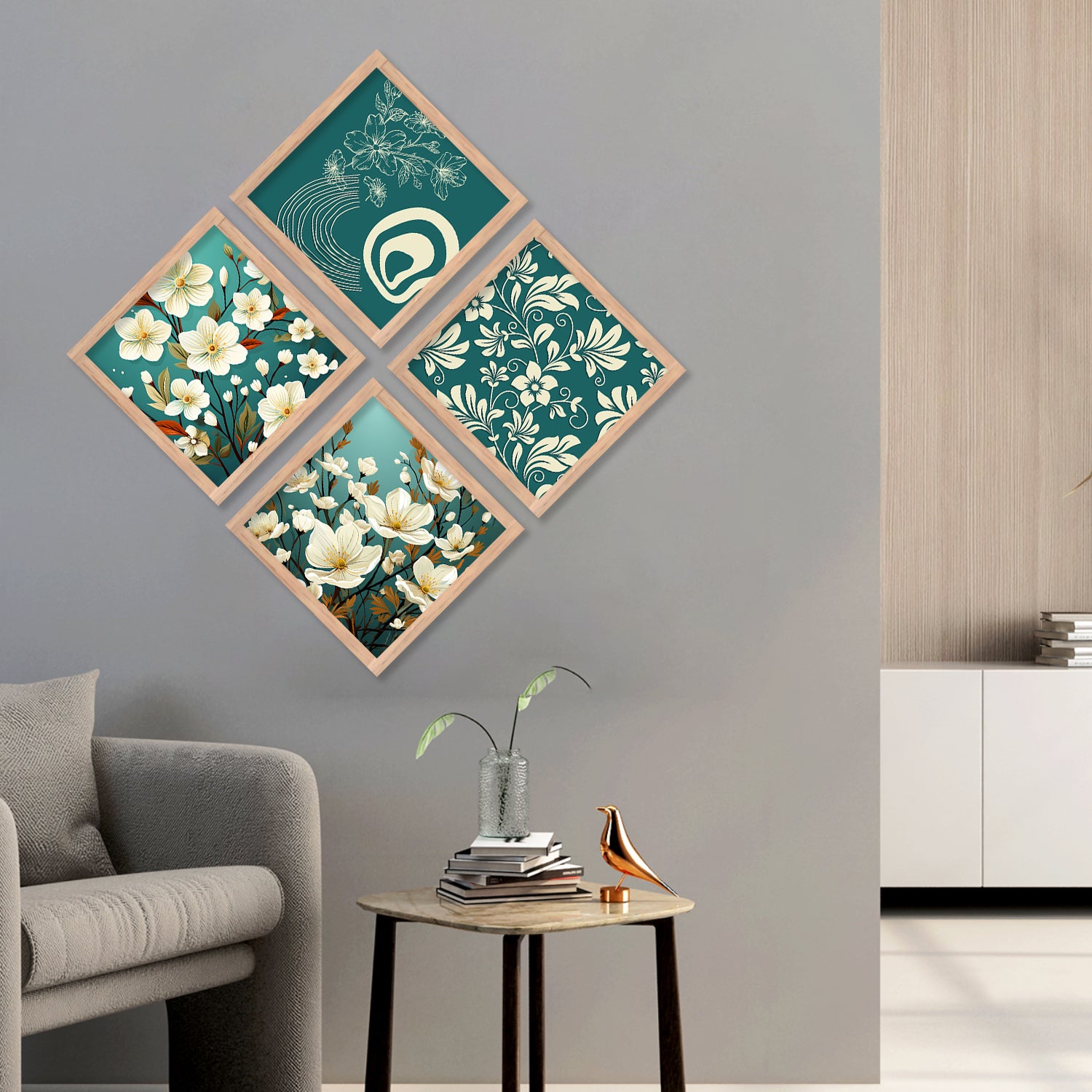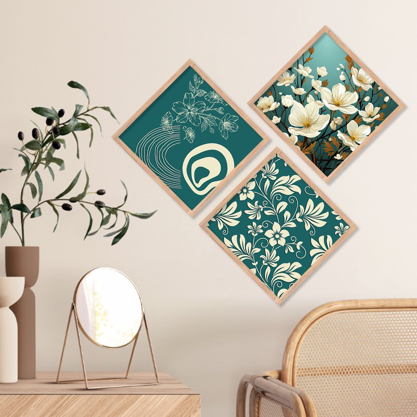 Floral Modern Art Framed Print Combo for Home Living Room Office Wall Decor