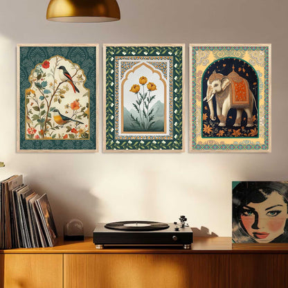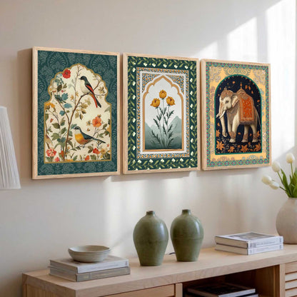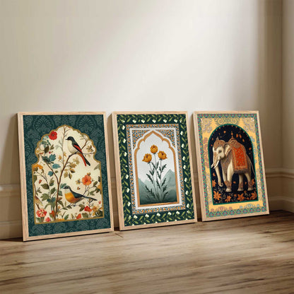 Transform your interior with the "Traditional Indian Art Elegance Series," a sophisticated collection of framed prints that exemplifies traditional wall painting and wall decoration. Each piece features a distinctive wall painting design, blending elements of traditional wall painting with the intricate details of Traditional Indian / Madhubani painting. This series not only serves as captivating wall art but also enriches any space as a cherished wall piece. Ideal for those looking to infuse their environments with the timeless allure of traditional wall decor, this collection offers a perfect mix of artistry and cultural heritage.