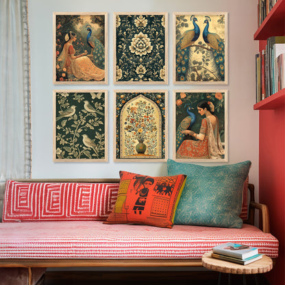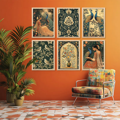 Transform your interior with the "Traditional Indian Art Elegance Series," a sophisticated collection of framed prints that exemplifies traditional wall painting and wall decoration. Each piece features a distinctive wall painting design, blending elements of traditional wall painting with the intricate details of Traditional Indian / Madhubani painting. This series not only serves as captivating wall art but also enriches any space as a cherished wall piece. Ideal for those looking to infuse their environments with the timeless allure of traditional wall decor, this collection offers a perfect mix of artistry and cultural heritage.