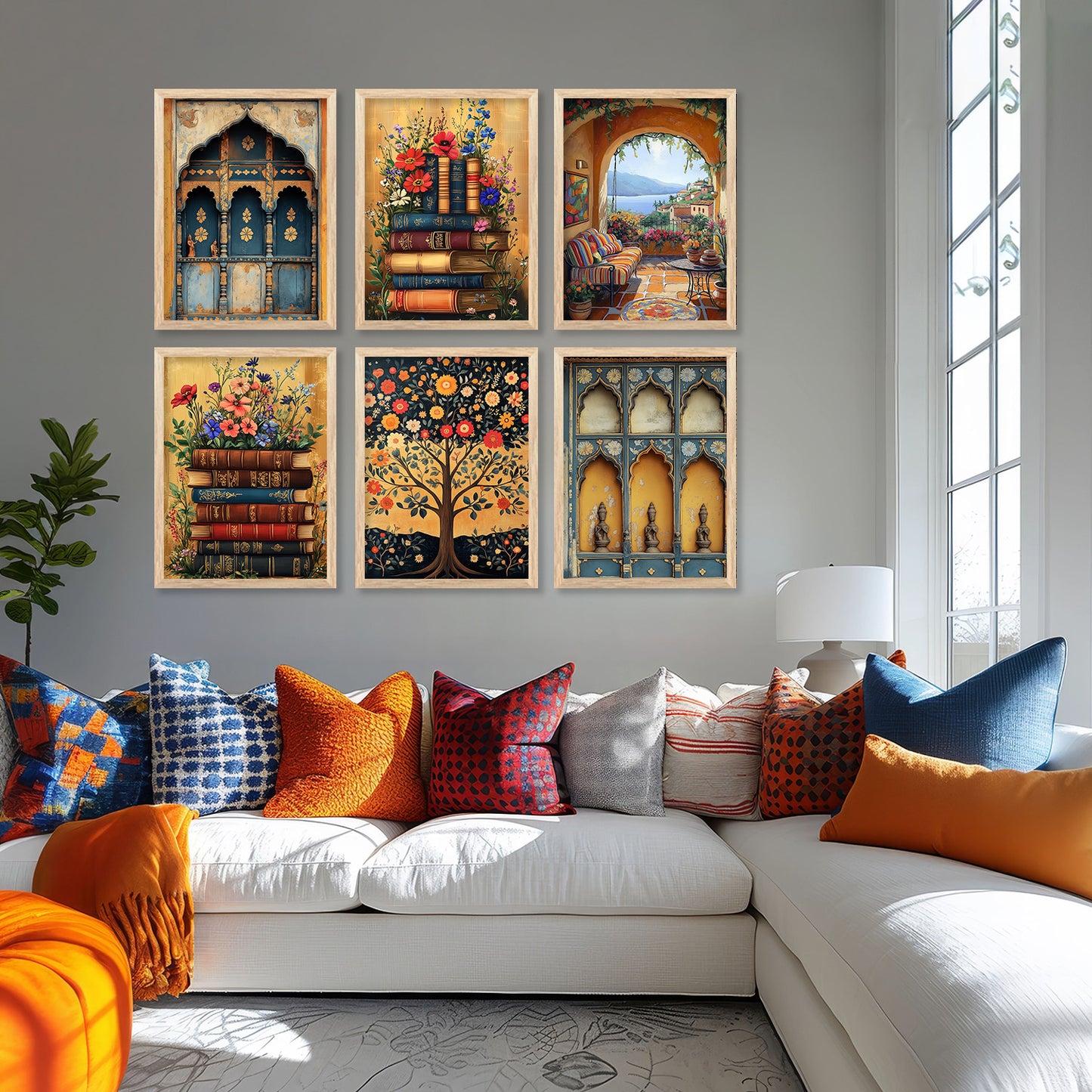 Transform your interior with the "Traditional Indian Art Elegance Series," a sophisticated collection of framed prints that exemplifies traditional wall painting and wall decoration. Each piece features a distinctive wall painting design, blending elements of traditional wall painting with the intricate details of Traditional Indian / Madhubani painting. This series not only serves as captivating wall art but also enriches any space as a cherished wall piece. Ideal for those looking to infuse their environments with the timeless allure of traditional wall decor, this collection offers a perfect mix of artistry and cultural heritage.