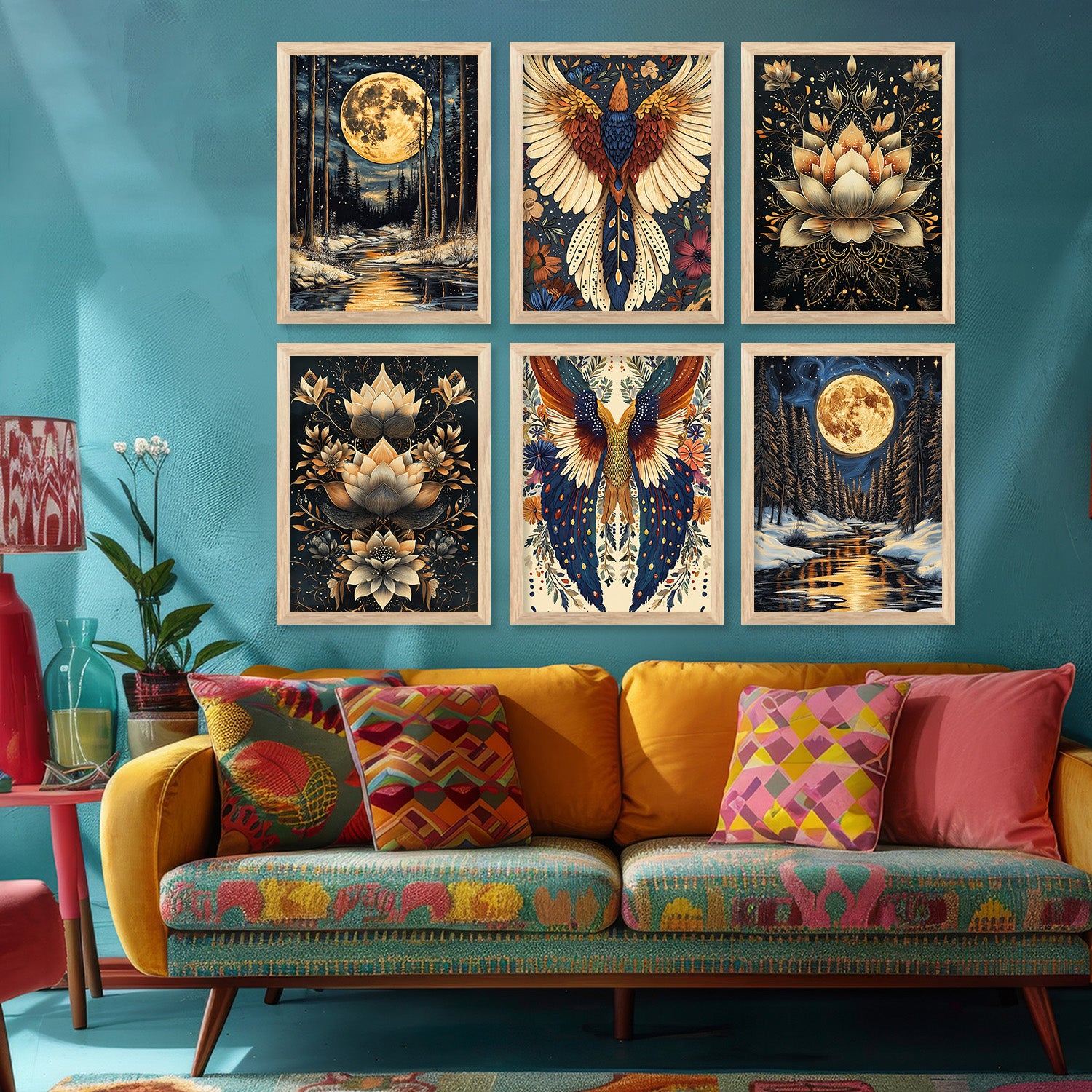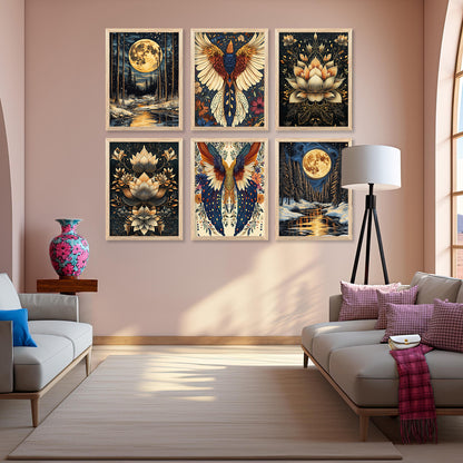 Transform your interior with the "Traditional Indian Art Elegance Series," a sophisticated collection of framed prints that exemplifies traditional wall painting and wall decoration. Each piece features a distinctive wall painting design, blending elements of traditional wall painting with the intricate details of Traditional Indian / Madhubani painting. This series not only serves as captivating wall art but also enriches any space as a cherished wall piece. Ideal for those looking to infuse their environments with the timeless allure of traditional wall decor, this collection offers a perfect mix of artistry and cultural heritage.
