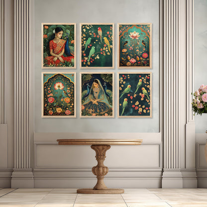 Transform your interior with the "Traditional Indian Art Elegance Series," a sophisticated collection of framed prints that exemplifies traditional wall painting and wall decoration. Each piece features a distinctive wall painting design, blending elements of traditional wall painting with the intricate details of Traditional Indian / Madhubani painting. This series not only serves as captivating wall art but also enriches any space as a cherished wall piece. Ideal for those looking to infuse their environments with the timeless allure of traditional wall decor, this collection offers a perfect mix of artistry and cultural heritage.