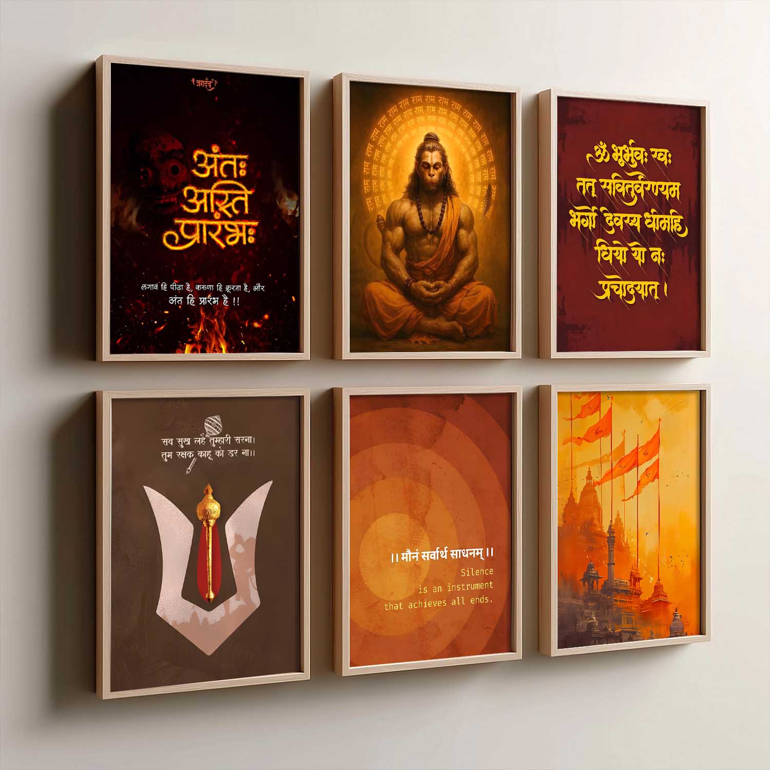 Lord Hanuman, Gayatri Mantra Hinduism Wall Art Paintings with Frame for Living Room Bedroom