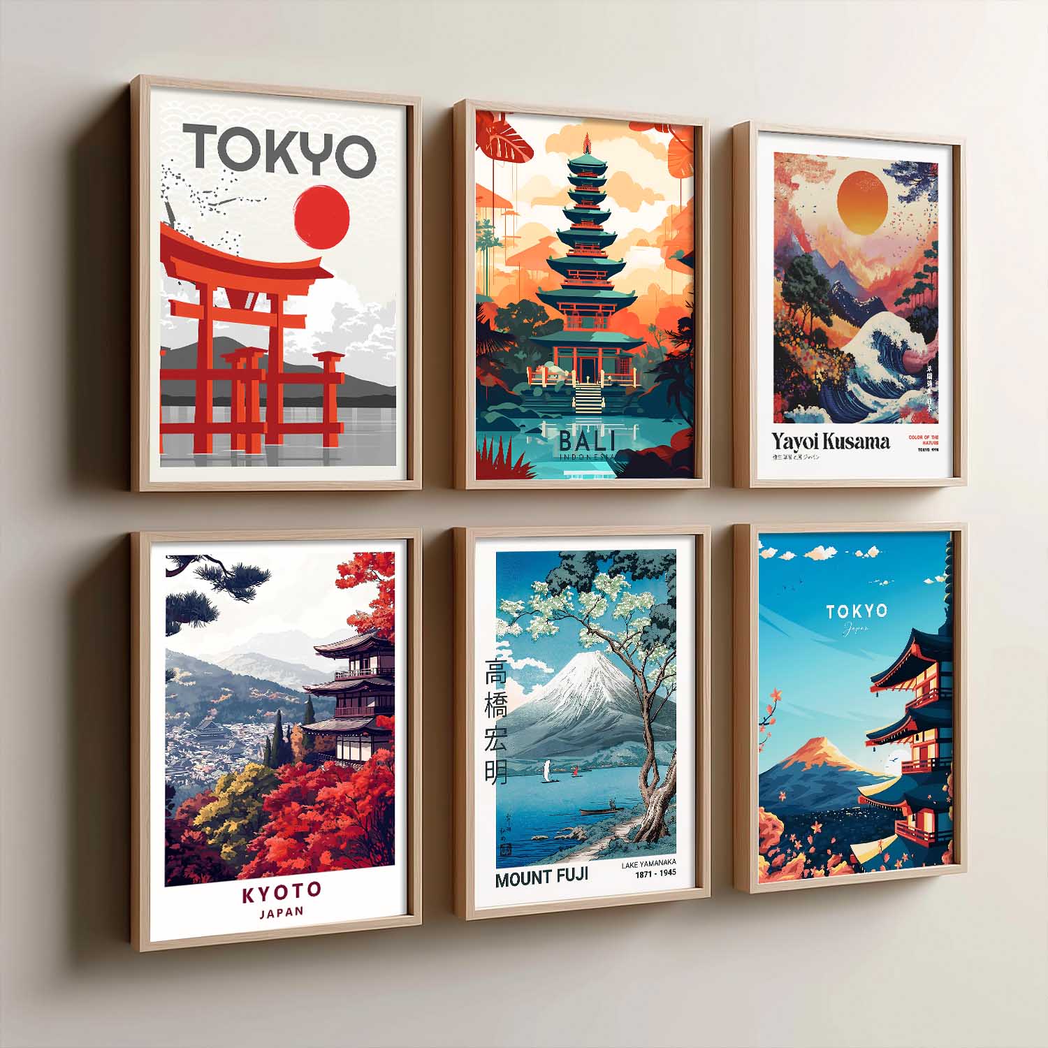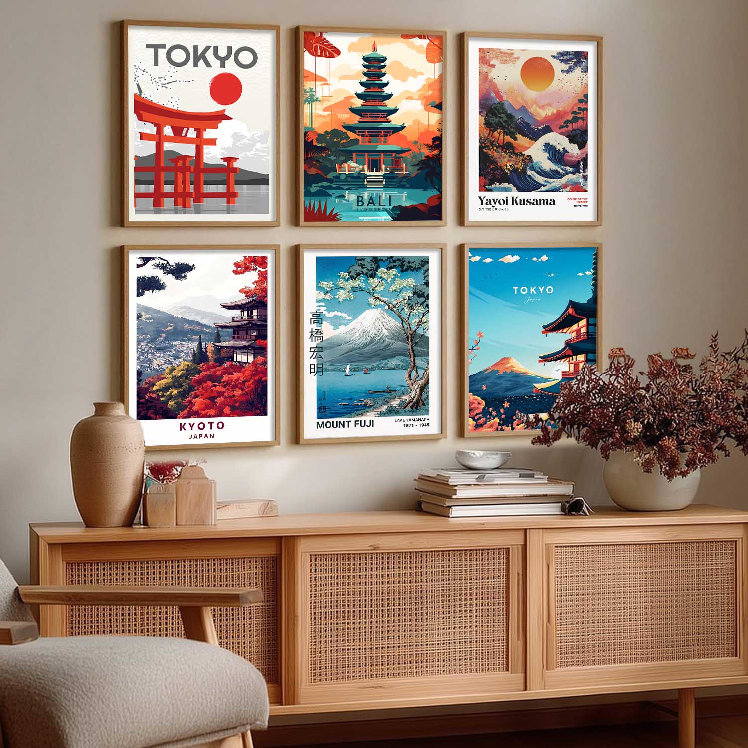 Japanese City View Wall Art Paintings with Frame for Living Room Bedroom