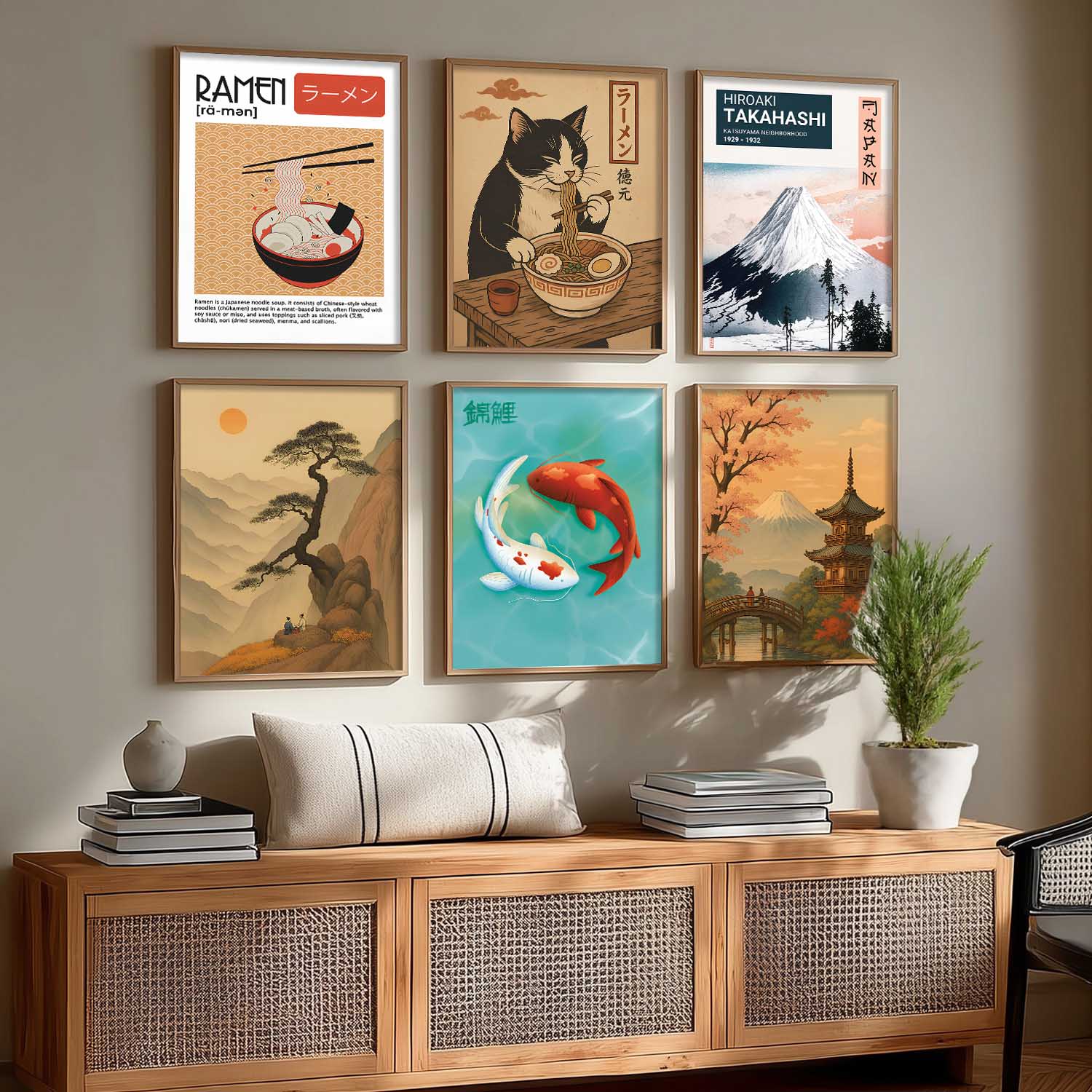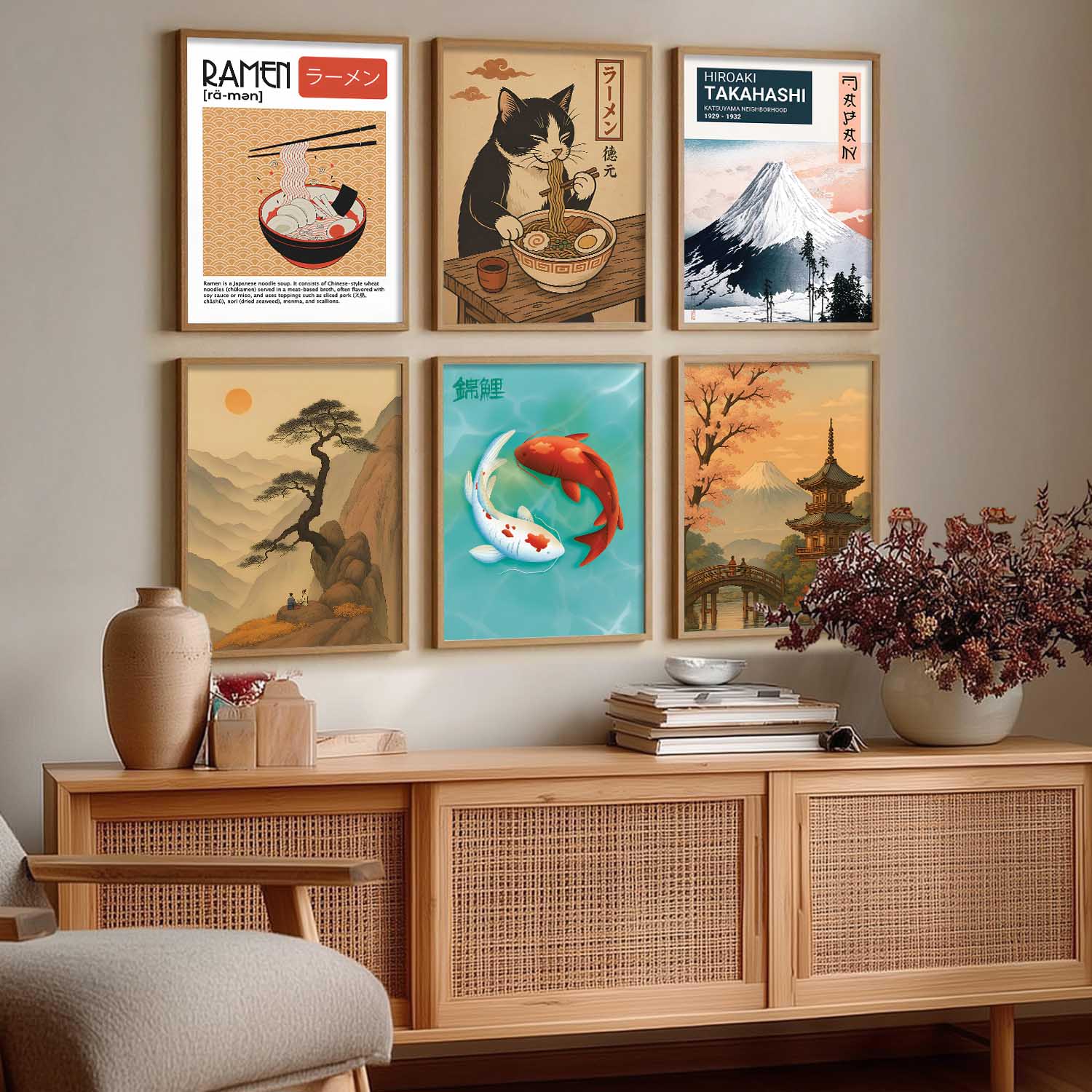 Japanese Aesthetic Wall Art Paintings with Frame for Living Room Bedroom