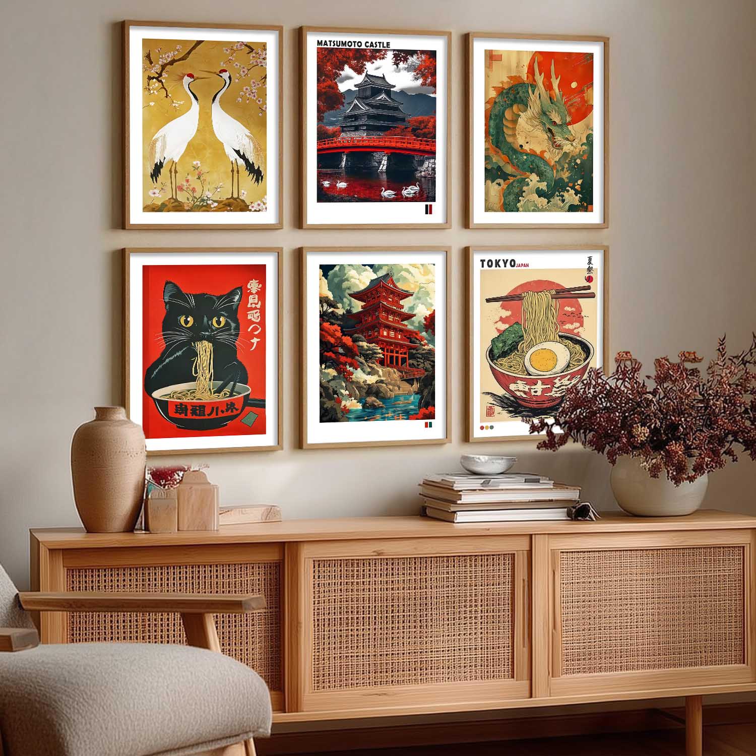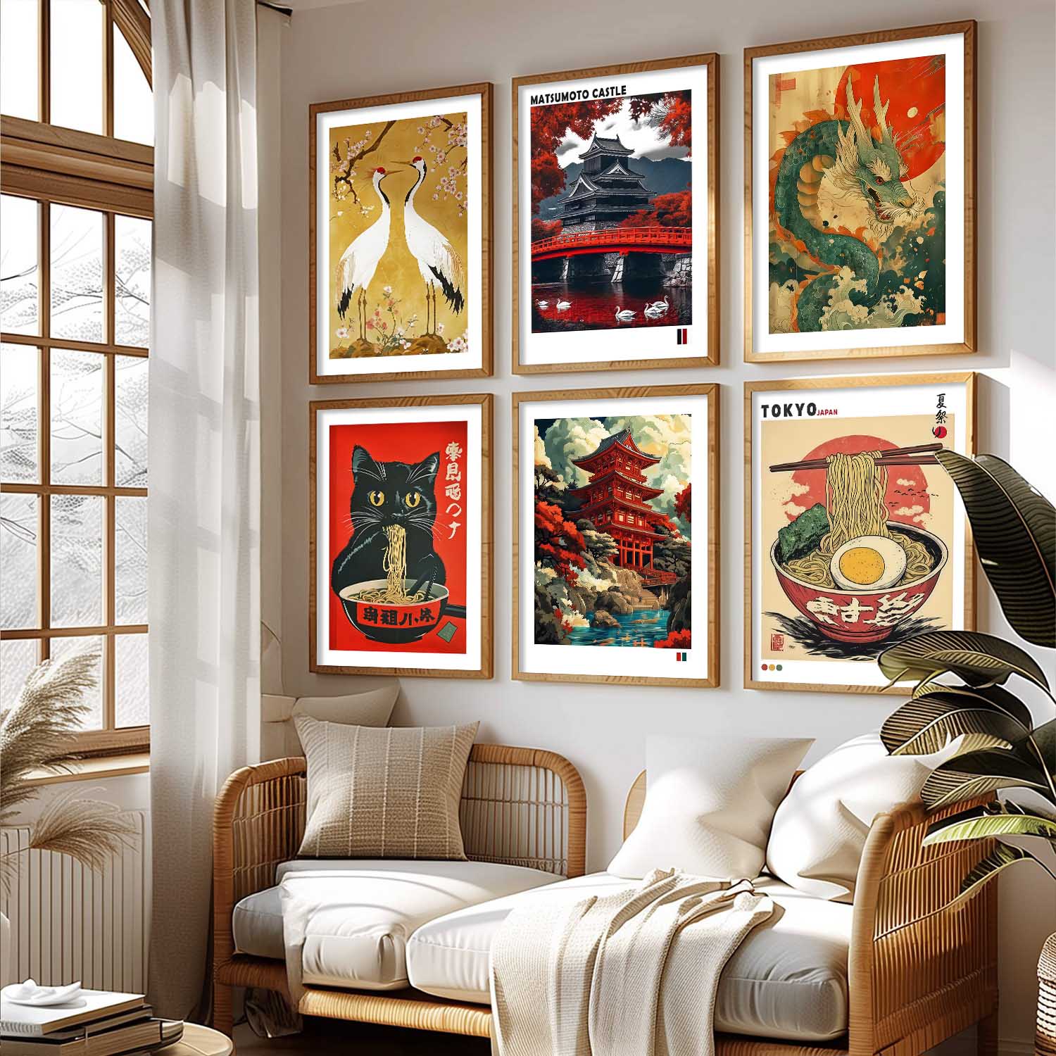 Japanese Aesthetic Wall Art Paintings with Frame for Living Room Bedroom