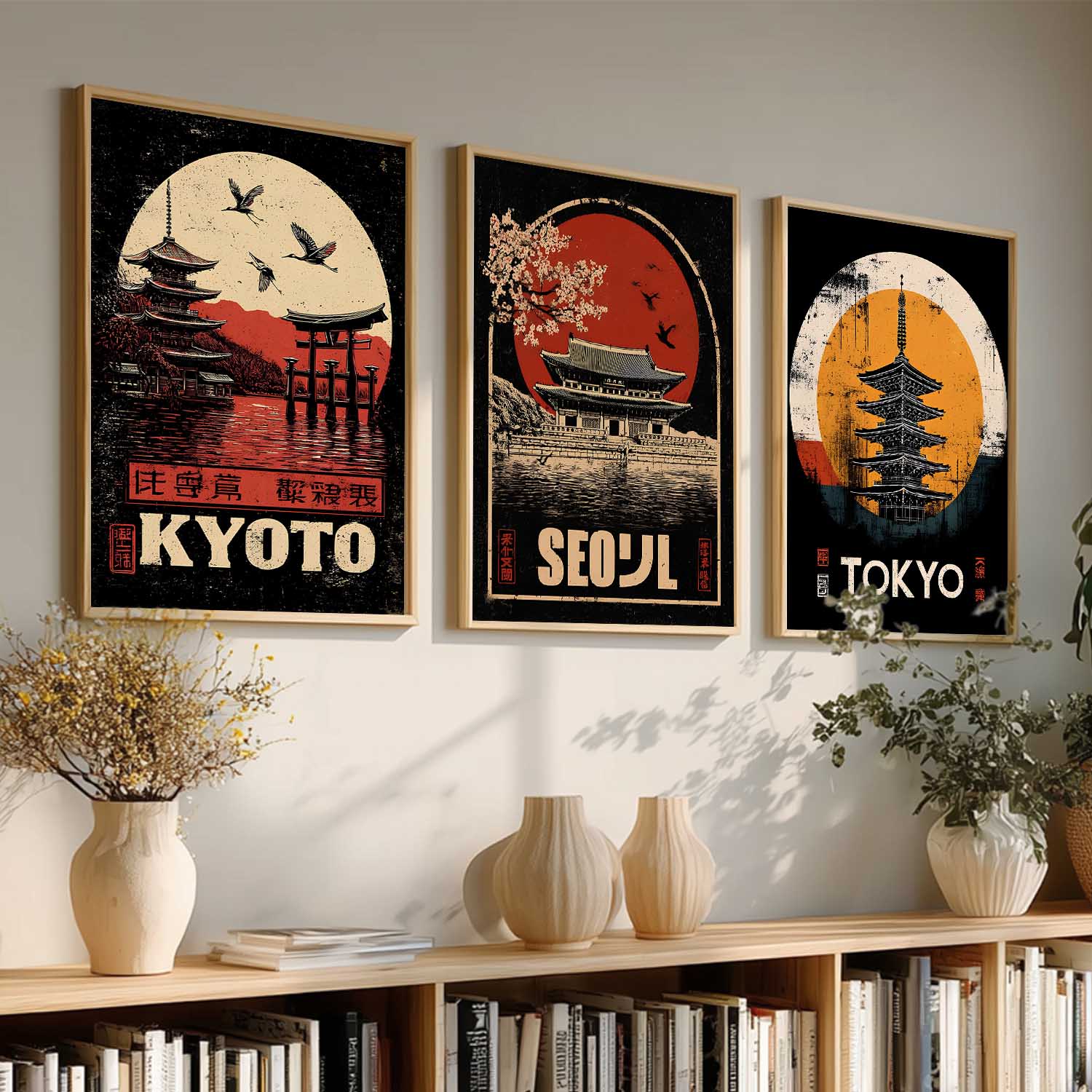 Japanese City View Wall Art Paintings for Living Room Bedroom