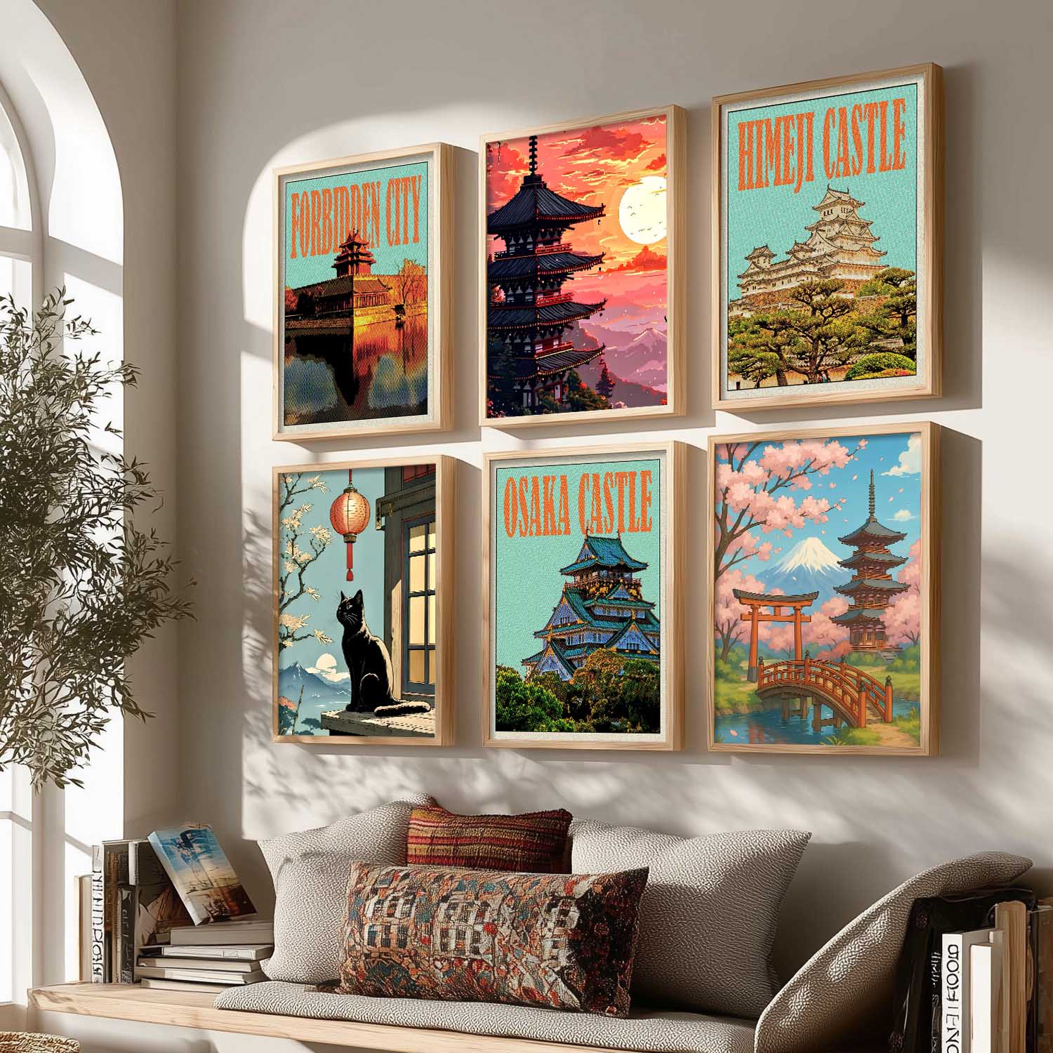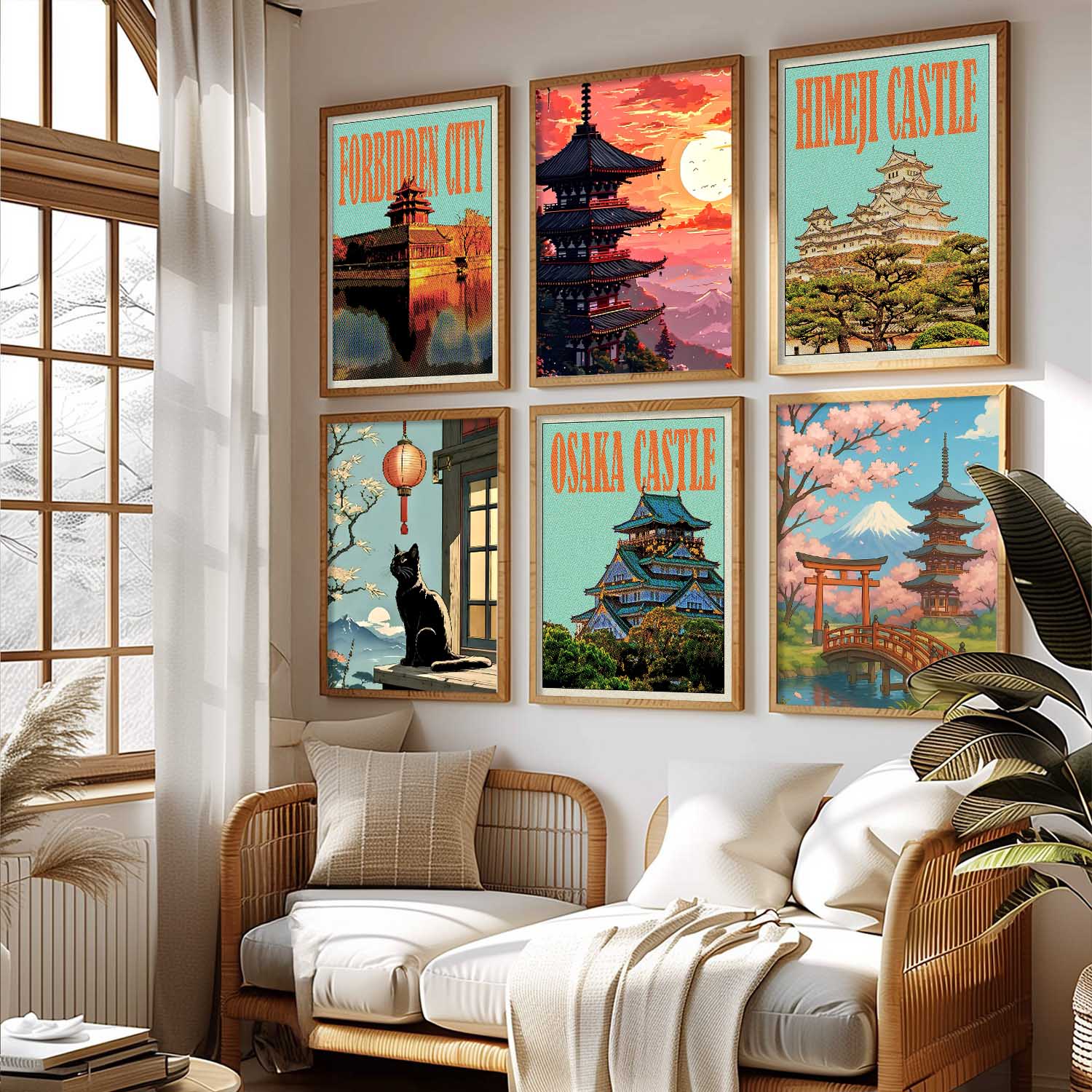 Japanese Nature and City View Wall Art Paintings with Frame for Living Room Bedroom