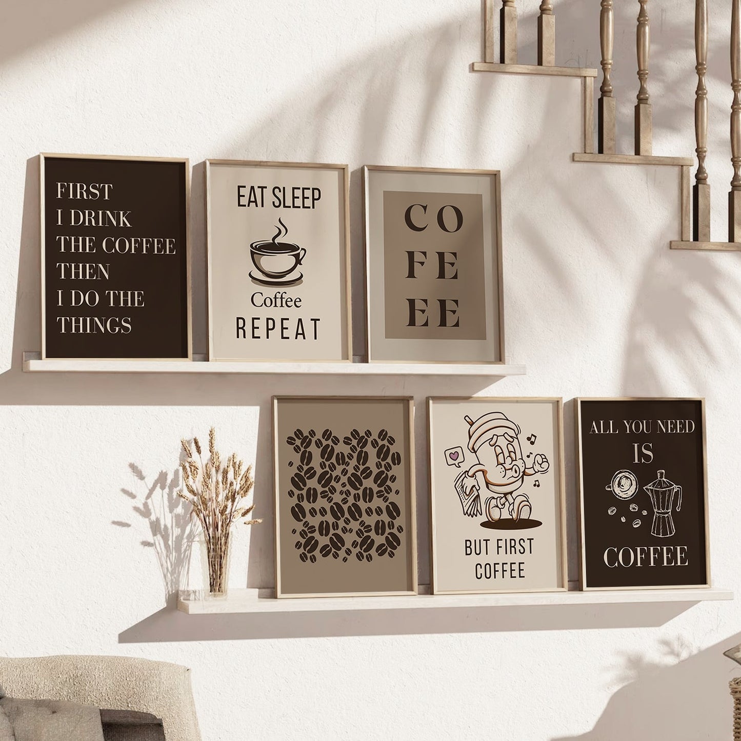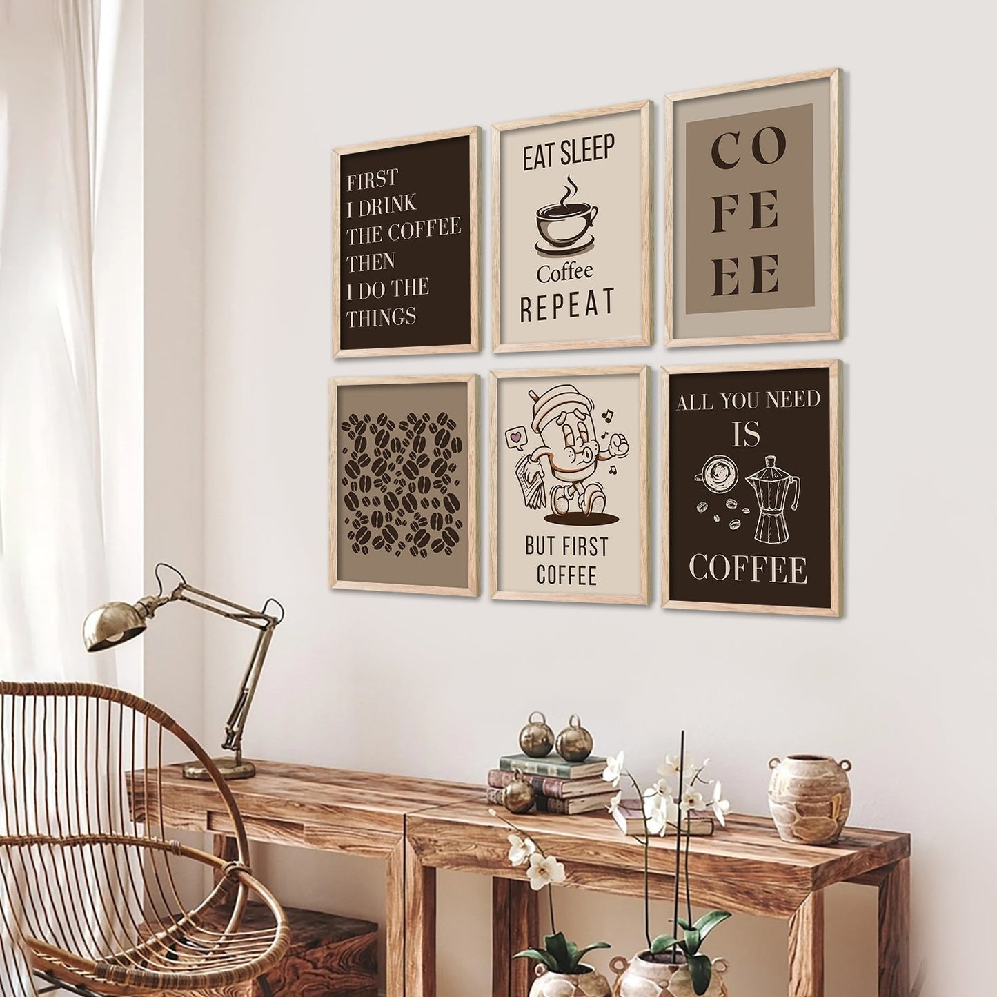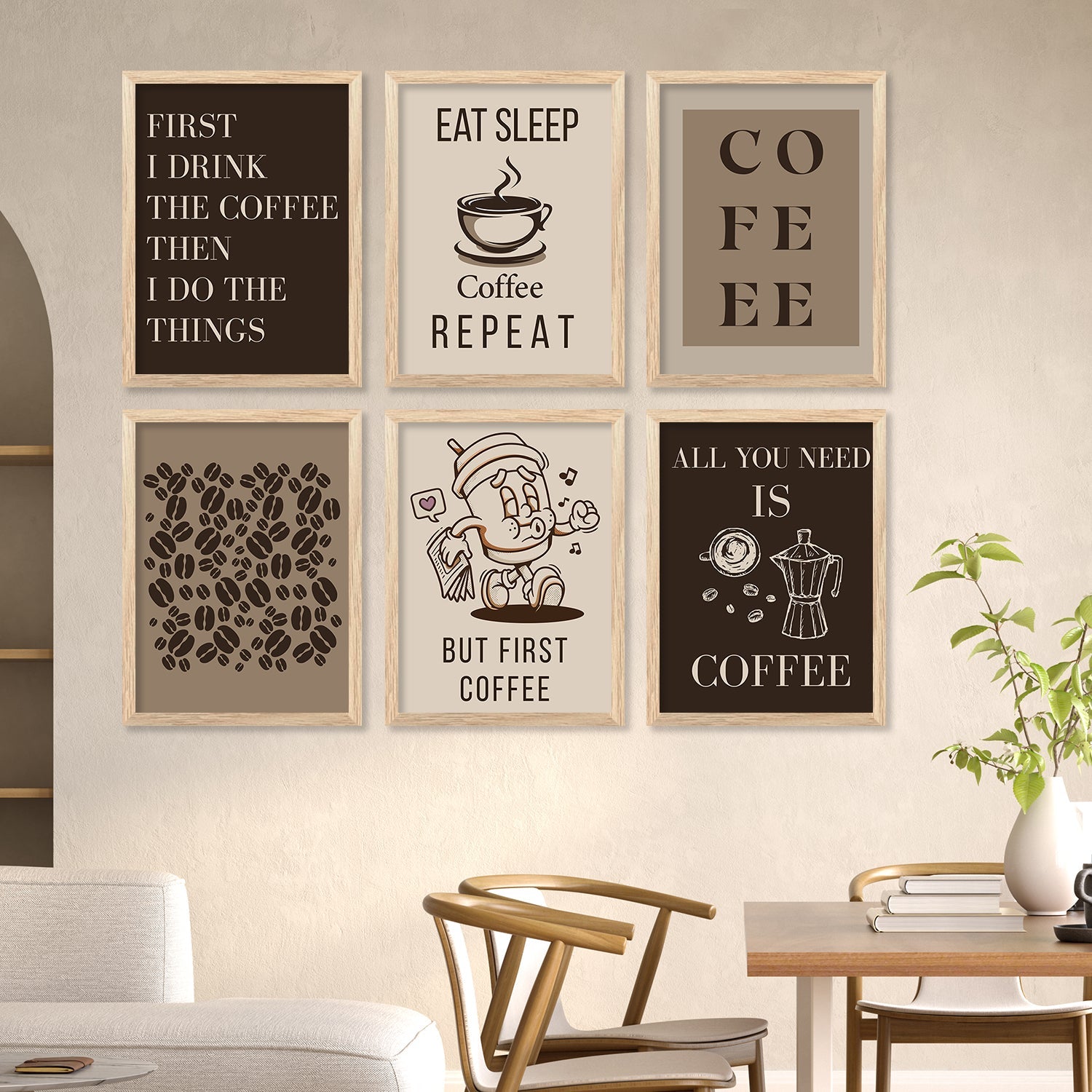 Kitchen Theme Framed Posters for Restaurant Kitchen Dinning Room Cafe Wall Decor Set of 6