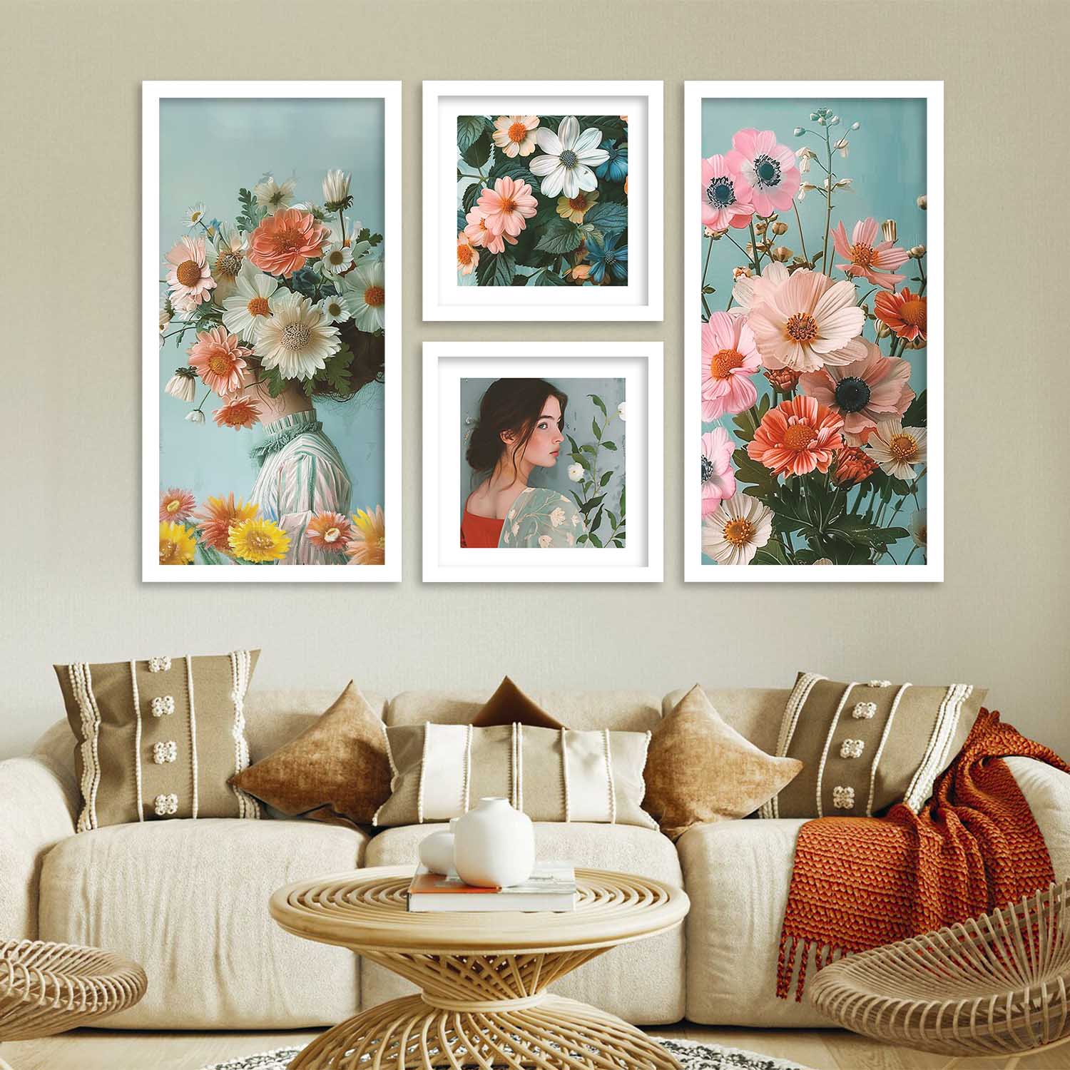 kotart Modern Big Size Art Home Decoration Painting Floral Paintings With Frame For Living Room Bed Room Hotel Wall Decor