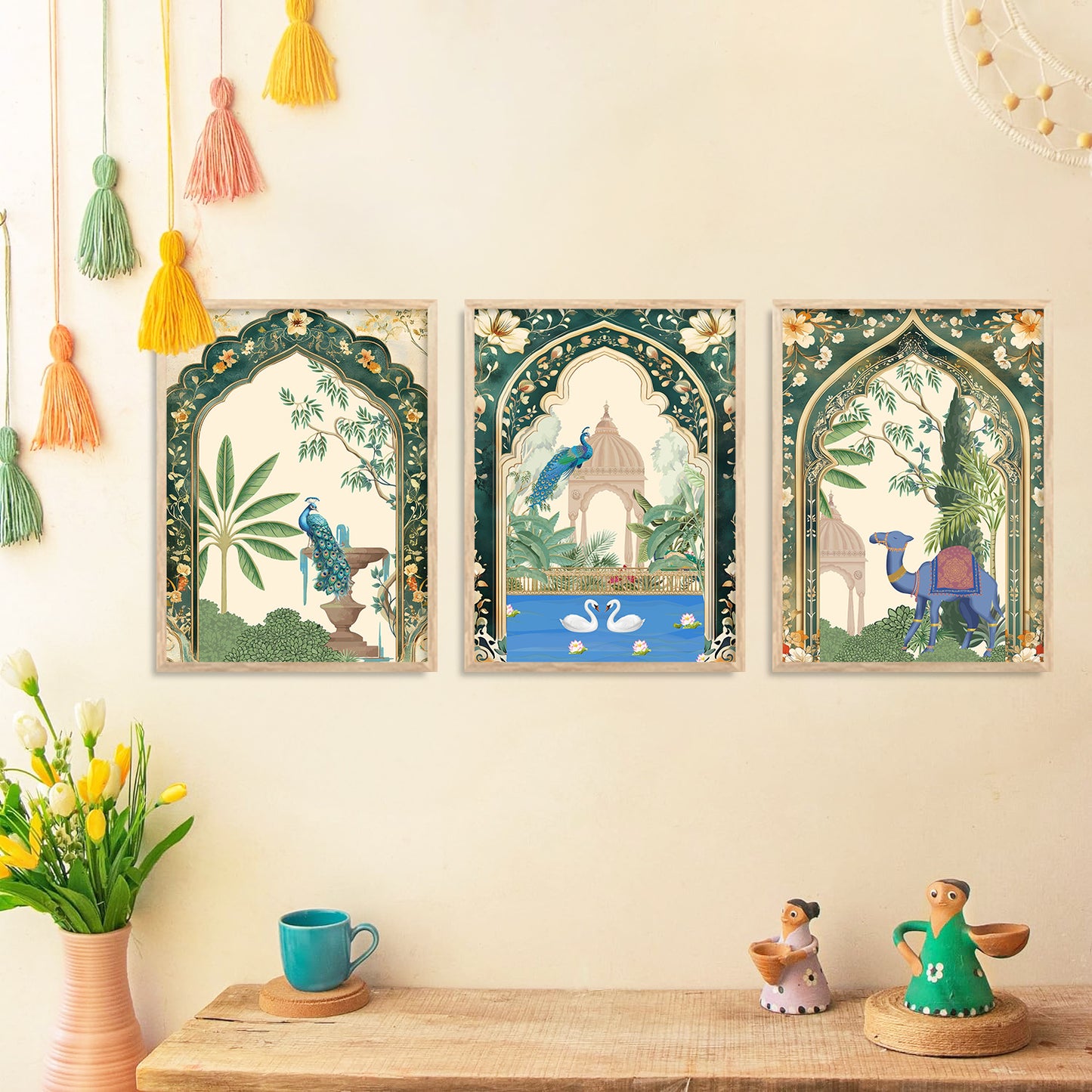 Transform your interior with the "Traditional Indian Art Elegance Series," a sophisticated collection of framed prints that exemplifies traditional wall painting and wall decoration. Each piece features a distinctive wall painting design, blending elements of traditional wall painting with the intricate details of Traditional Indian / Madhubani painting. This series not only serves as captivating wall art but also enriches any space as a cherished wall piece. Ideal for those looking to infuse their environments with the timeless allure of traditional wall decor, this collection offers a perfect mix of artistry and cultural heritage.