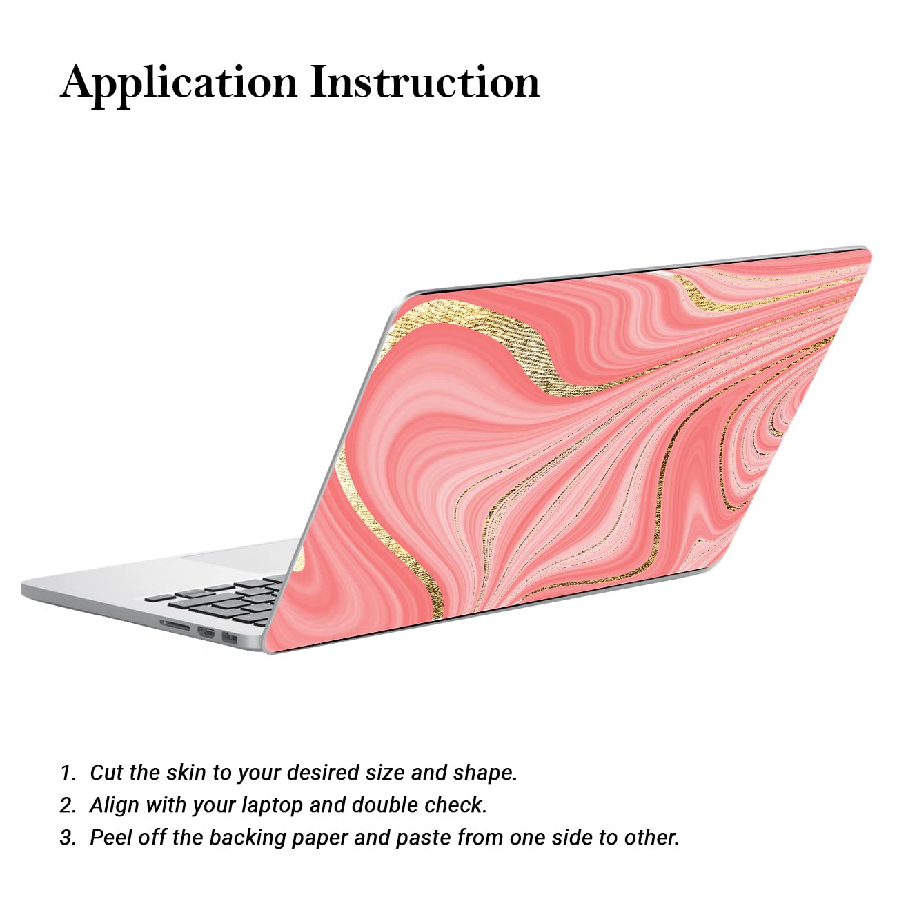 - Once applied, press down firmly on the skin to ensure it is securely adhered to the laptop.