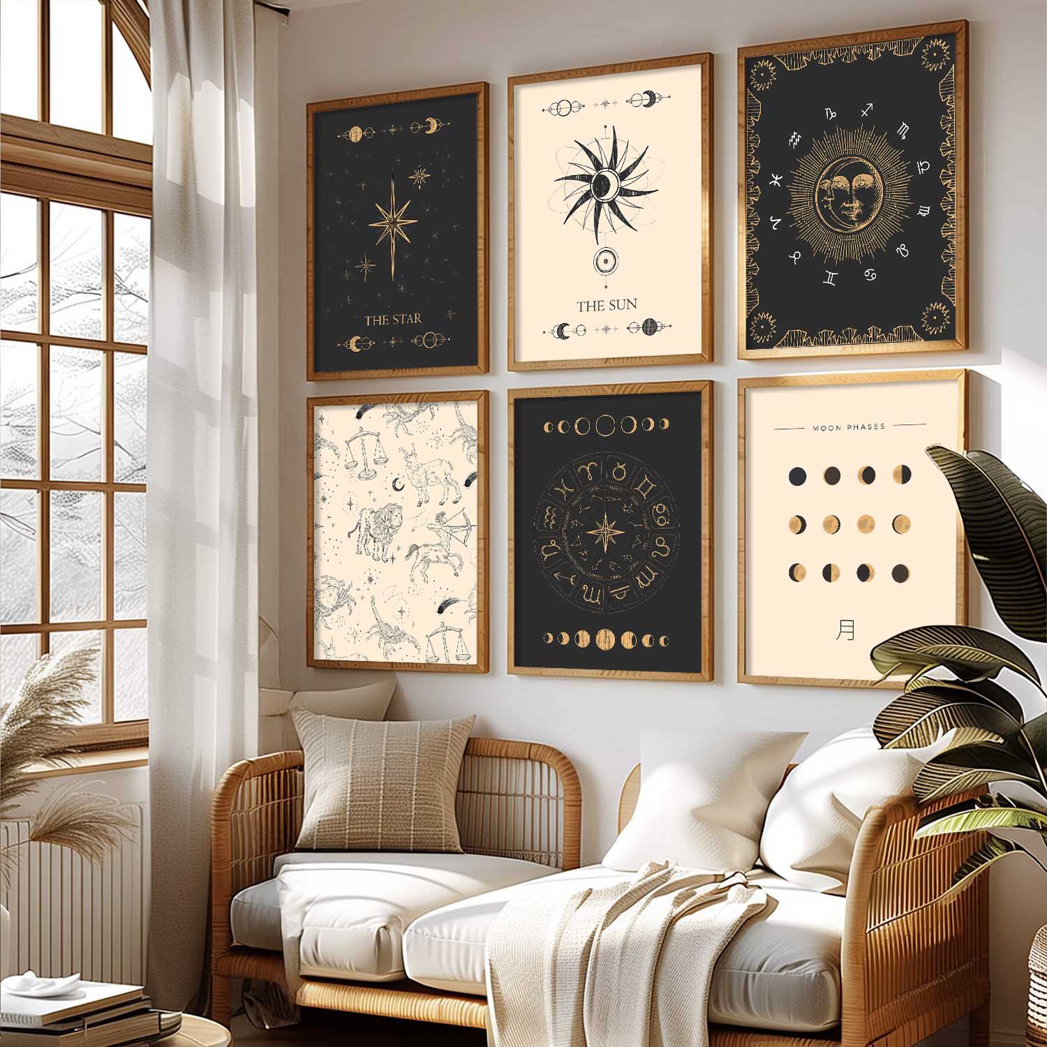 Rising Moon Sun Astrological Signs Wall Art Paintings with Frame for Living Room Bedroom