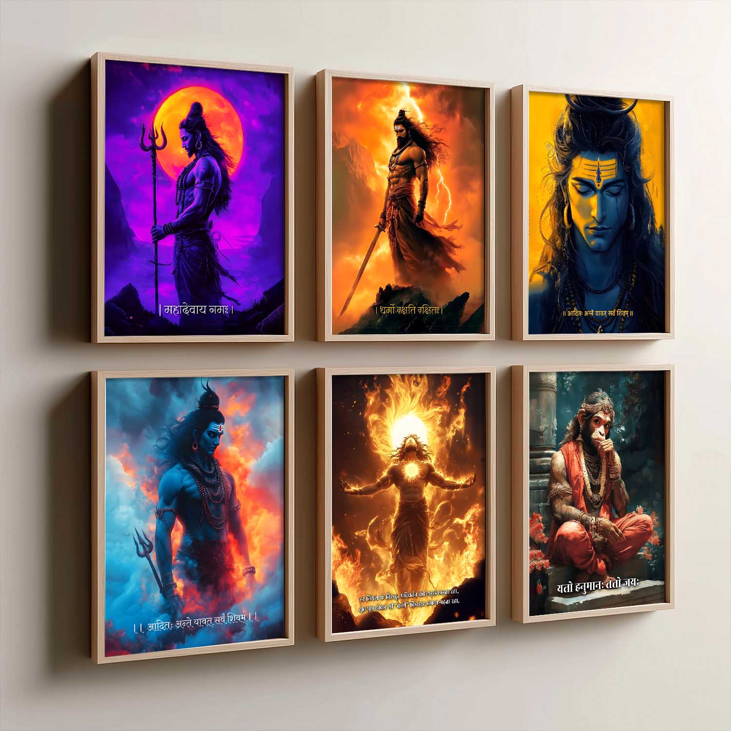 Lord Hanuman Shiva Karna Wall Art Paintings with Frame for Living Room Bedroom