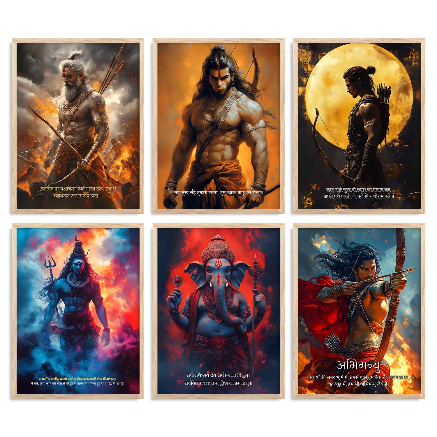 Lord Hanuman Mahadev Ganesha Karna Wall Art Paintings with Frame for Living Room Bedroom