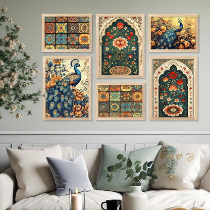 Transform your interior with the "Traditional Indian Art Elegance Series," a sophisticated collection of framed prints that exemplifies traditional wall painting and wall decoration. Each piece features a distinctive wall painting design, blending elements of traditional wall painting with the intricate details of Traditional Indian / Madhubani painting. This series not only serves as captivating wall art but also enriches any space as a cherished wall piece. Ideal for those looking to infuse their environments with the timeless allure of traditional wall decor, this collection offers a perfect mix of artistry and cultural heritage.
