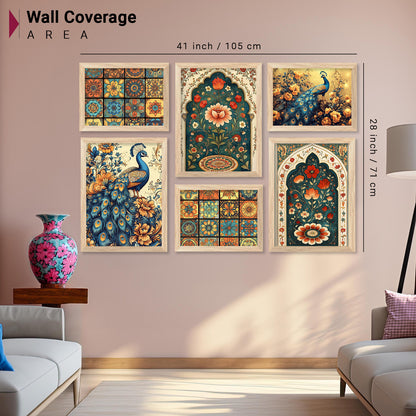 Madhubani Art Prints with Frame for Living Room Bedroom Home and Office Wall Decor Set of 6