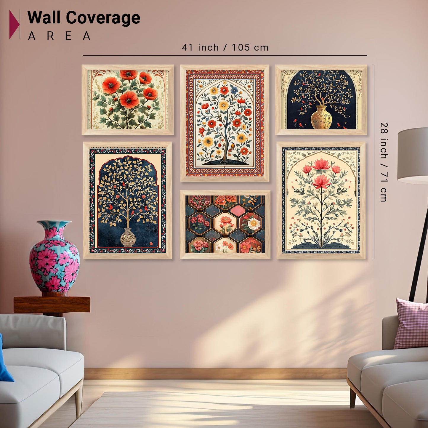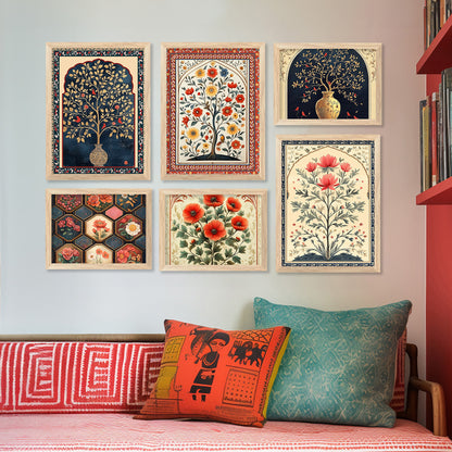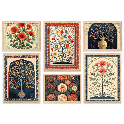 Floral Art Prints with Frame for Living Room Bedroom Home and Office Wall Decor Set of 6