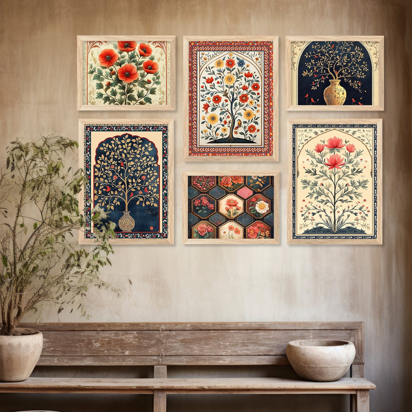 Transform your interior with the "Traditional Indian Art Elegance Series," a sophisticated collection of framed prints that exemplifies traditional wall painting and wall decoration. Each piece features a distinctive wall painting design, blending elements of traditional wall painting with the intricate details of Traditional Indian / Madhubani painting. This series not only serves as captivating wall art but also enriches any space as a cherished wall piece. Ideal for those looking to infuse their environments with the timeless allure of traditional wall decor, this collection offers a perfect mix of artistry and cultural heritage.