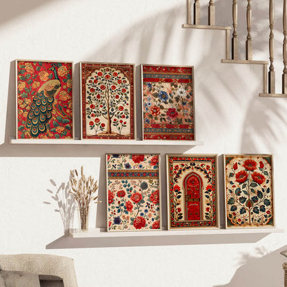 Transform your interior with the "Traditional Indian Art Elegance Series," a sophisticated collection of framed prints that exemplifies traditional wall painting and wall decoration. Each piece features a distinctive wall painting design, blending elements of traditional wall painting with the intricate details of Traditional Indian / Madhubani painting. This series not only serves as captivating wall art but also enriches any space as a cherished wall piece. Ideal for those looking to infuse their environments with the timeless allure of traditional wall decor, this collection offers a perfect mix of artistry and cultural heritage.
