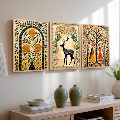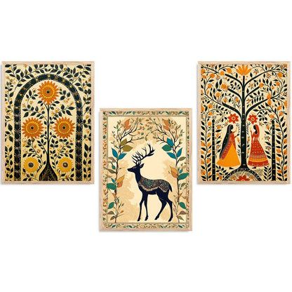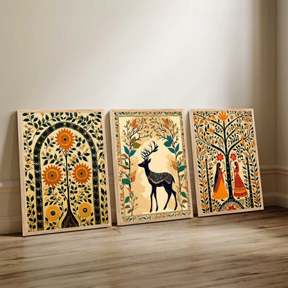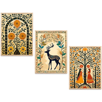 Transform your interior with the "Traditional Indian Art Elegance Series," a sophisticated collection of framed prints that exemplifies traditional wall painting and wall decoration. Each piece features a distinctive wall painting design, blending elements of traditional wall painting with the intricate details of Traditional Indian / Madhubani painting. This series not only serves as captivating wall art but also enriches any space as a cherished wall piece. Ideal for those looking to infuse their environments with the timeless allure of traditional wall decor, this collection offers a perfect mix of artistry and cultural heritage.