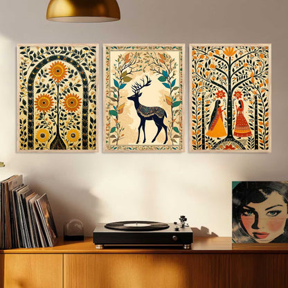 Madhubani Wall Art Paintings for Living Room - Wall Poster With frames