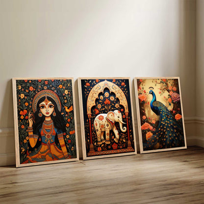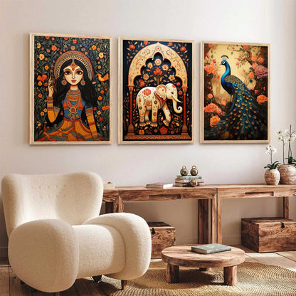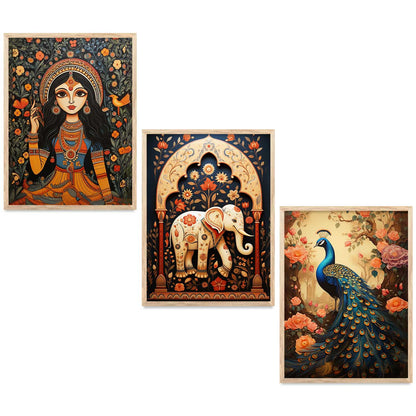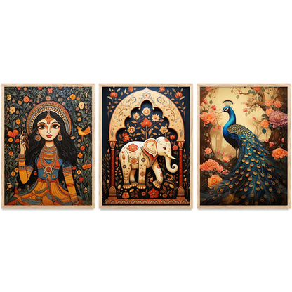 Transform your interior with the "Traditional Indian Art Elegance Series," a sophisticated collection of framed prints that exemplifies traditional wall painting and wall decoration. Each piece features a distinctive wall painting design, blending elements of traditional wall painting with the intricate details of Traditional Indian / Madhubani painting. This series not only serves as captivating wall art but also enriches any space as a cherished wall piece. Ideal for those looking to infuse their environments with the timeless allure of traditional wall decor, this collection offers a perfect mix of artistry and cultural heritage.