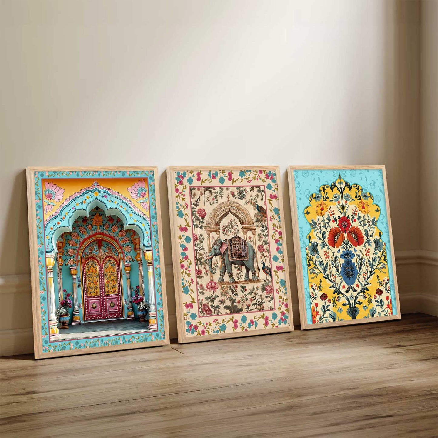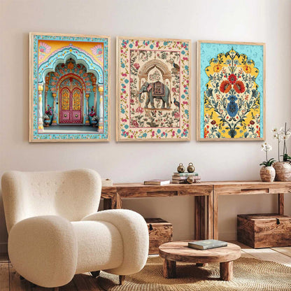 Transform your interior with the "Traditional Indian Art Elegance Series," a sophisticated collection of framed prints that exemplifies traditional wall painting and wall decoration. Each piece features a distinctive wall painting design, blending elements of traditional wall painting with the intricate details of Traditional Indian / Madhubani painting. This series not only serves as captivating wall art but also enriches any space as a cherished wall piece. Ideal for those looking to infuse their environments with the timeless allure of traditional wall decor, this collection offers a perfect mix of artistry and cultural heritage.
