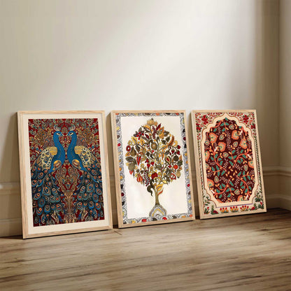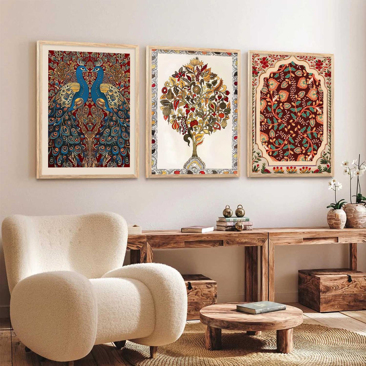 Transform your interior with the "Traditional Indian Art Elegance Series," a sophisticated collection of framed prints that exemplifies traditional wall painting and wall decoration. Each piece features a distinctive wall painting design, blending elements of traditional wall painting with the intricate details of Traditional Indian / Madhubani painting. This series not only serves as captivating wall art but also enriches any space as a cherished wall piece. Ideal for those looking to infuse their environments with the timeless allure of traditional wall decor, this collection offers a perfect mix of artistry and cultural heritage.