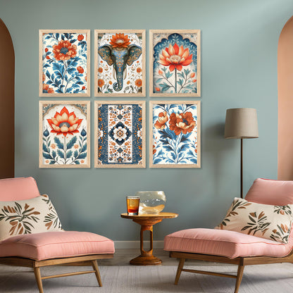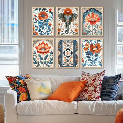 Transform your interior with the "Traditional Indian Art Elegance Series," a sophisticated collection of framed prints that exemplifies traditional wall painting and wall decoration. Each piece features a distinctive wall painting design, blending elements of traditional wall painting with the intricate details of Traditional Indian / Madhubani painting. This series not only serves as captivating wall art but also enriches any space as a cherished wall piece. Ideal for those looking to infuse their environments with the timeless allure of traditional wall decor, this collection offers a perfect mix of artistry and cultural heritage.