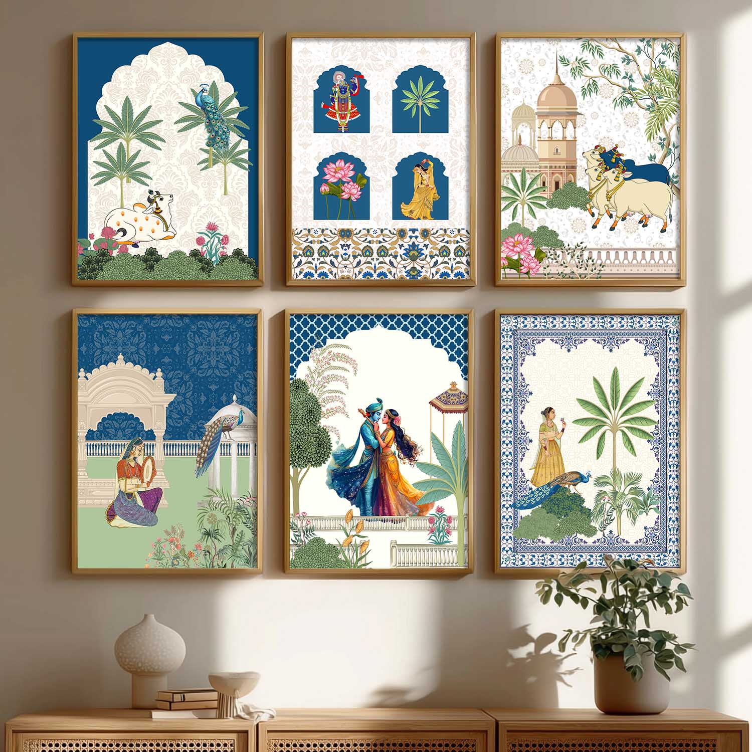 Transform your interior with the "Traditional Indian Art Elegance Series," a sophisticated collection of framed prints that exemplifies traditional wall painting and wall decoration. Each piece features a distinctive wall painting design, blending elements of traditional wall painting with the intricate details of Traditional Indian / Madhubani painting. This series not only serves as captivating wall art but also enriches any space as a cherished wall piece. Ideal for those looking to infuse their environments with the timeless allure of traditional wall decor, this collection offers a perfect mix of artistry and cultural heritage.