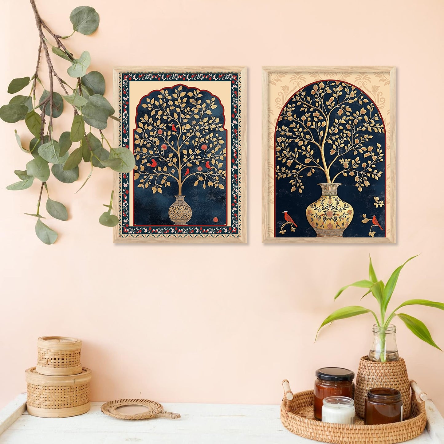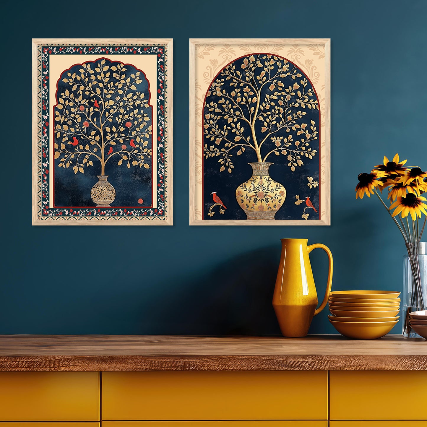 Transform your interior with the "Traditional Indian Art Elegance Series," a sophisticated collection of framed prints that exemplifies traditional wall painting and wall decoration. Each piece features a distinctive wall painting design, blending elements of traditional wall painting with the intricate details of Madhubani painting. This series not only serves as captivating wall art but also enriches any space as a cherished wall piece. Ideal for those looking to infuse their environments with the timeless allure of traditional wall decor, this collection offers a perfect mix of artistry and cultural heritage.