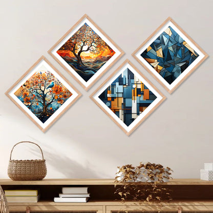 Modern Art Framed Print Combo for Home Living Room Office Wall Decor