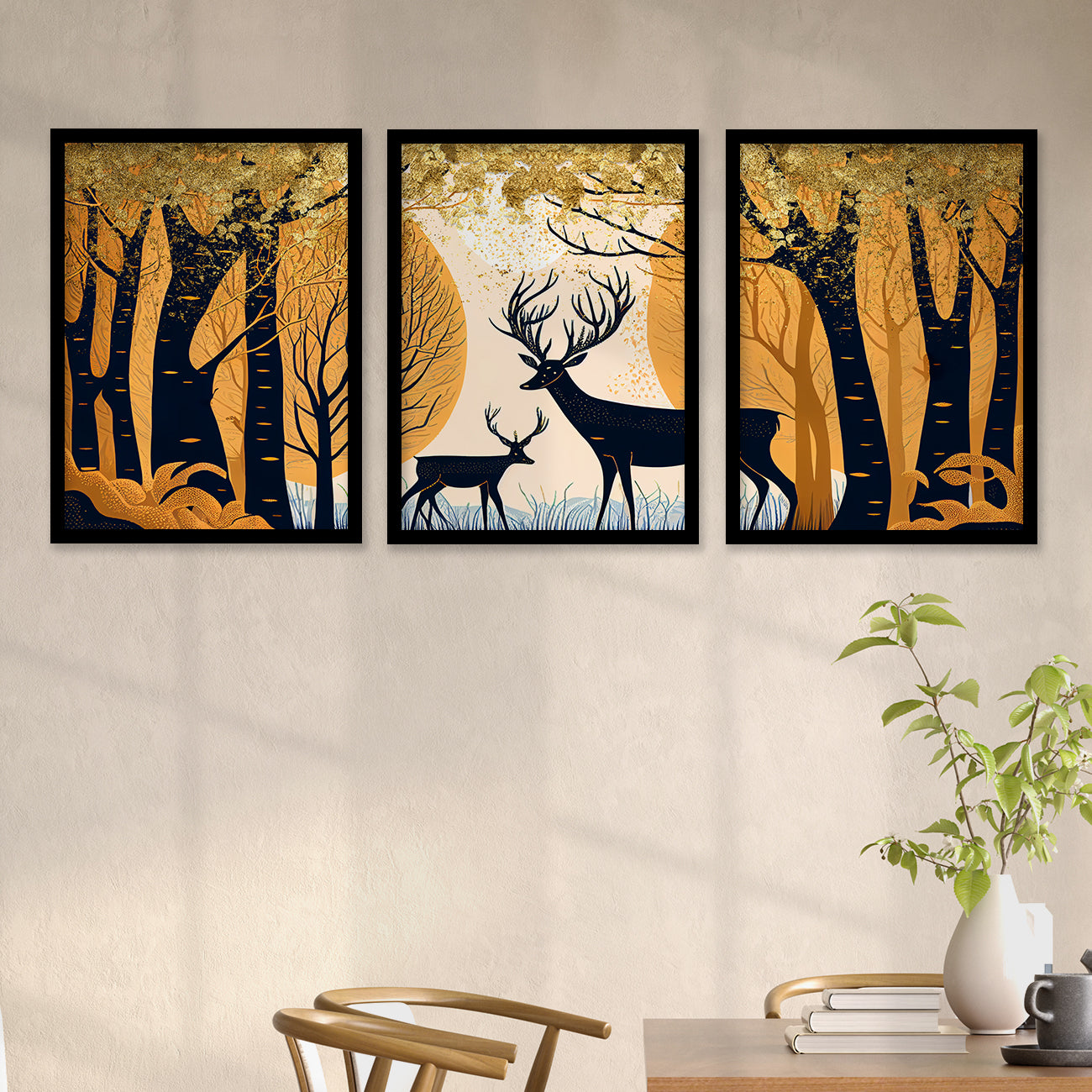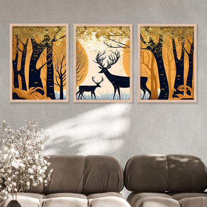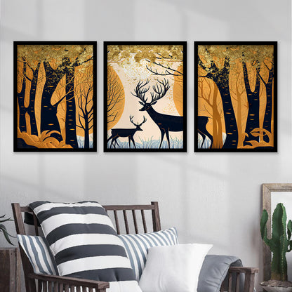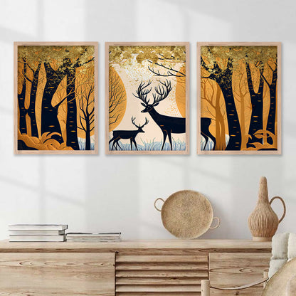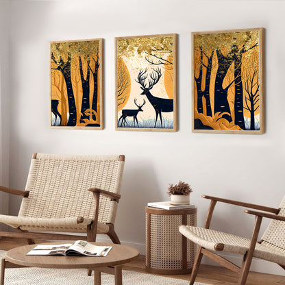 Modern Art Prints for Living Room Bedroom - Deer Print Combo for Home and Office Wall Decor