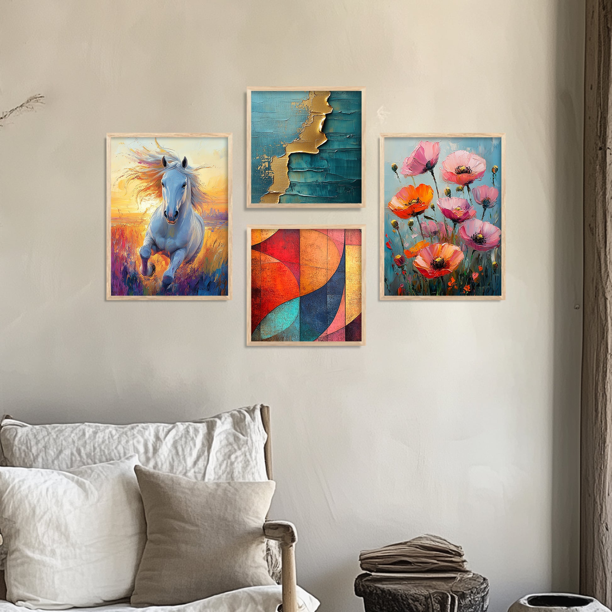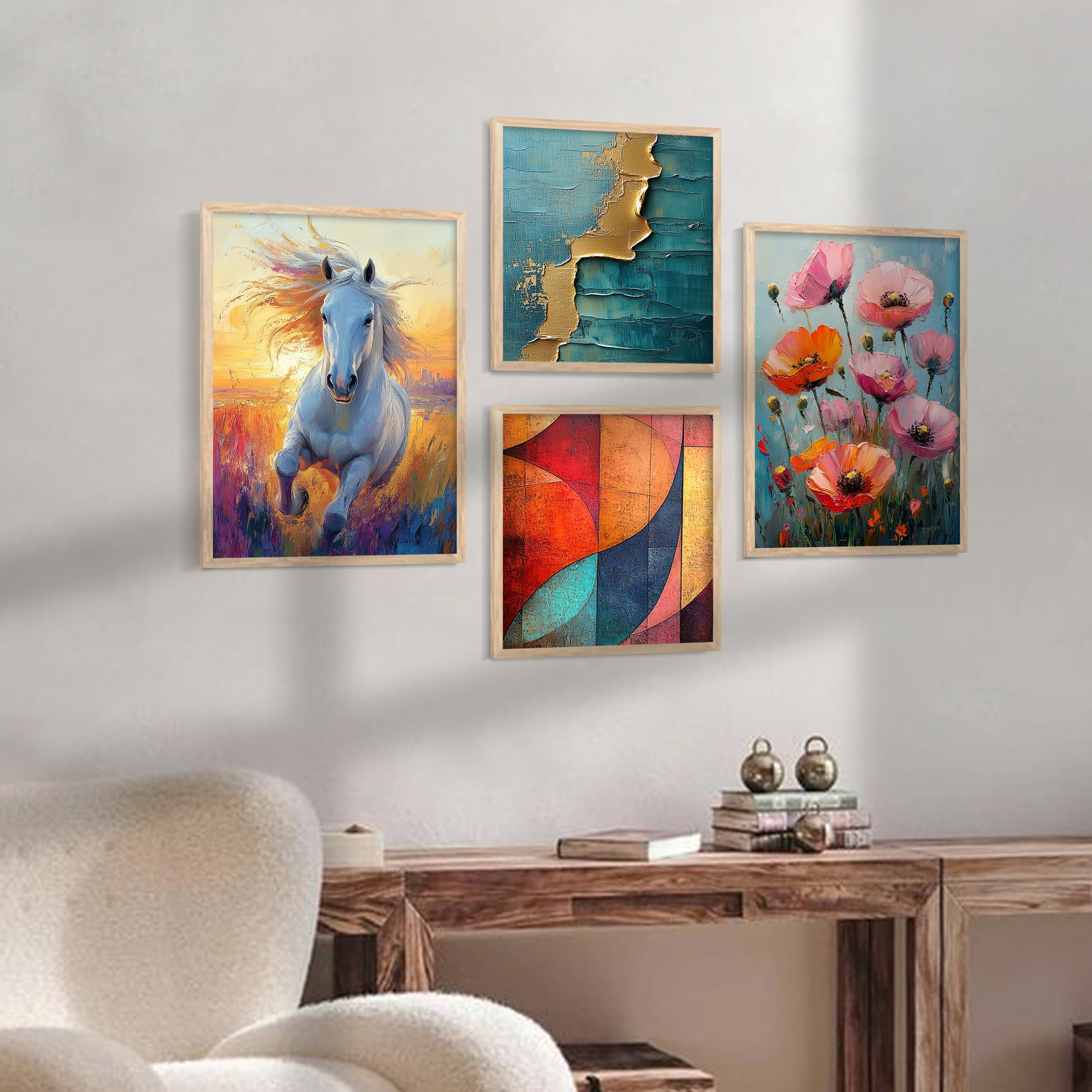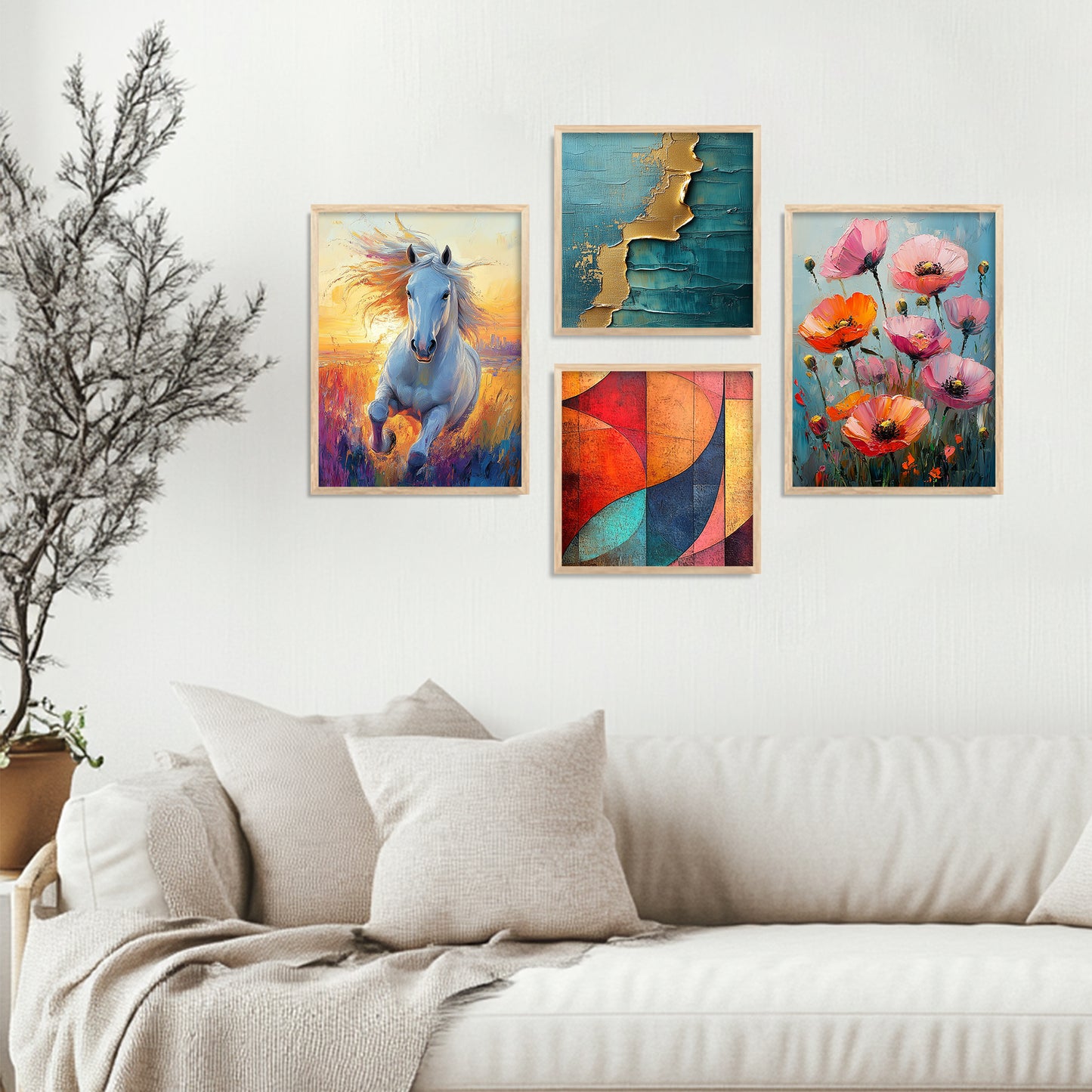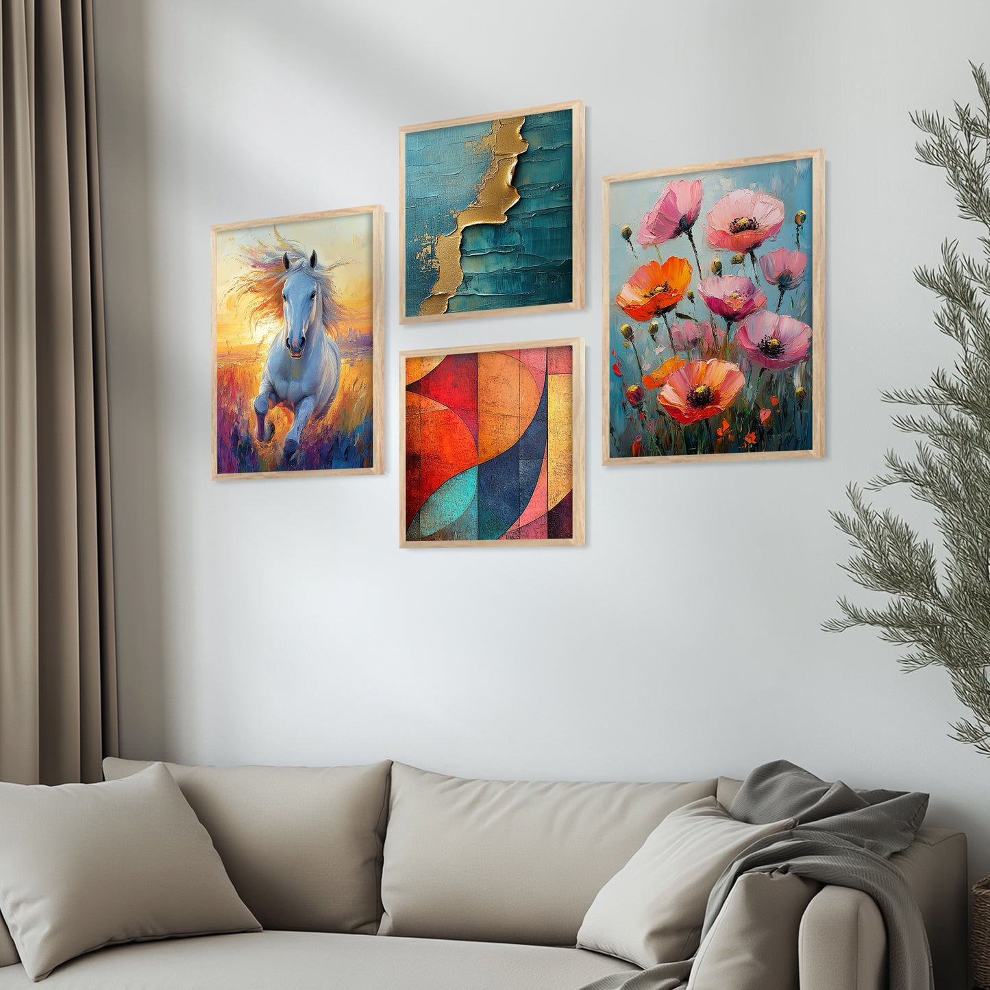 Introduce a breath of fresh air into your home with our "Nature Inspired Art Series," a collection of framed prints that beautifully capture the essence of the natural world. Each wall piece in this series is a masterpiece of wall painting design, showcasing vibrant landscapes and serene natural scenes. These pieces serve as stunning wall decorations, offering a tranquil retreat through exquisite wall art. Ideal for enhancing any space, this series perfectly complements existing wall decor with its organic themes and soothing colors. Whether you're looking to create a focal point with a significant wall painting or add subtle elegance with smaller wall pieces, our collection brings the calming influence of nature right into your living space.
