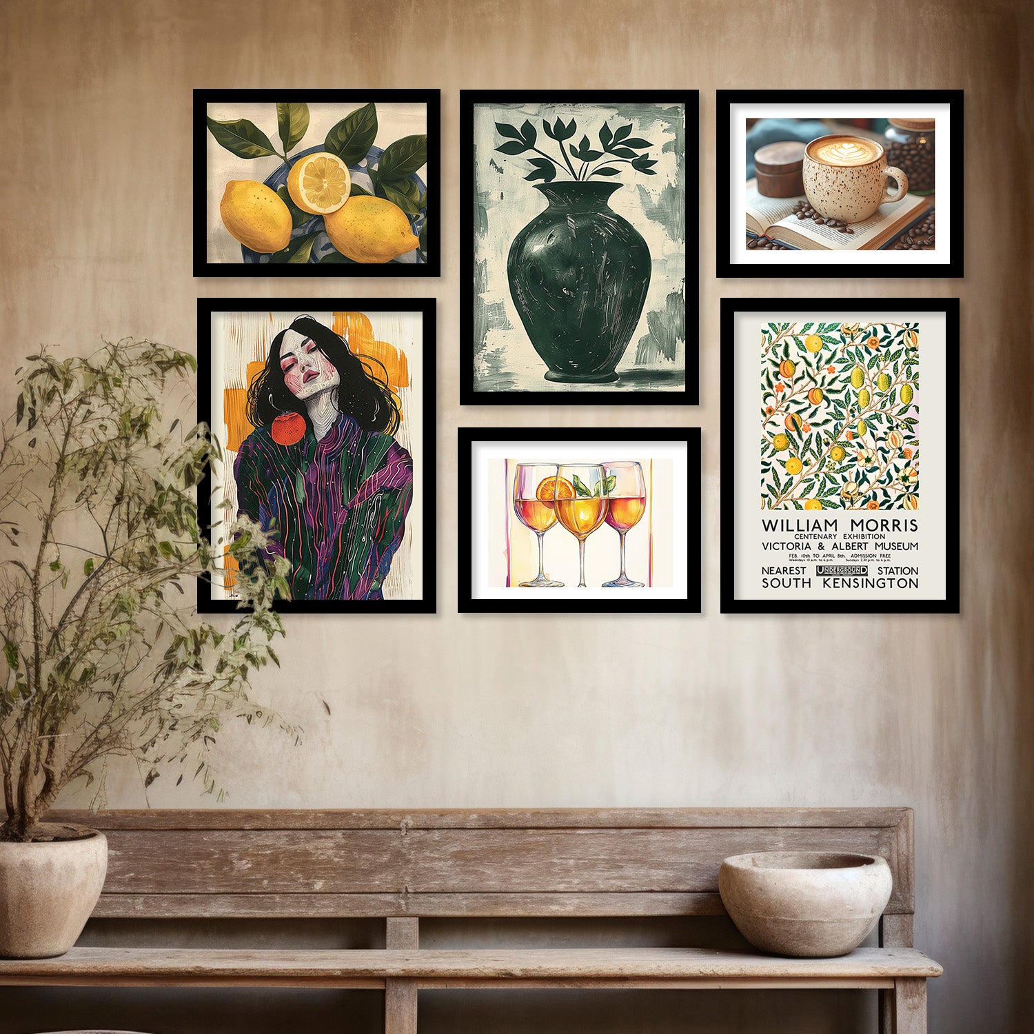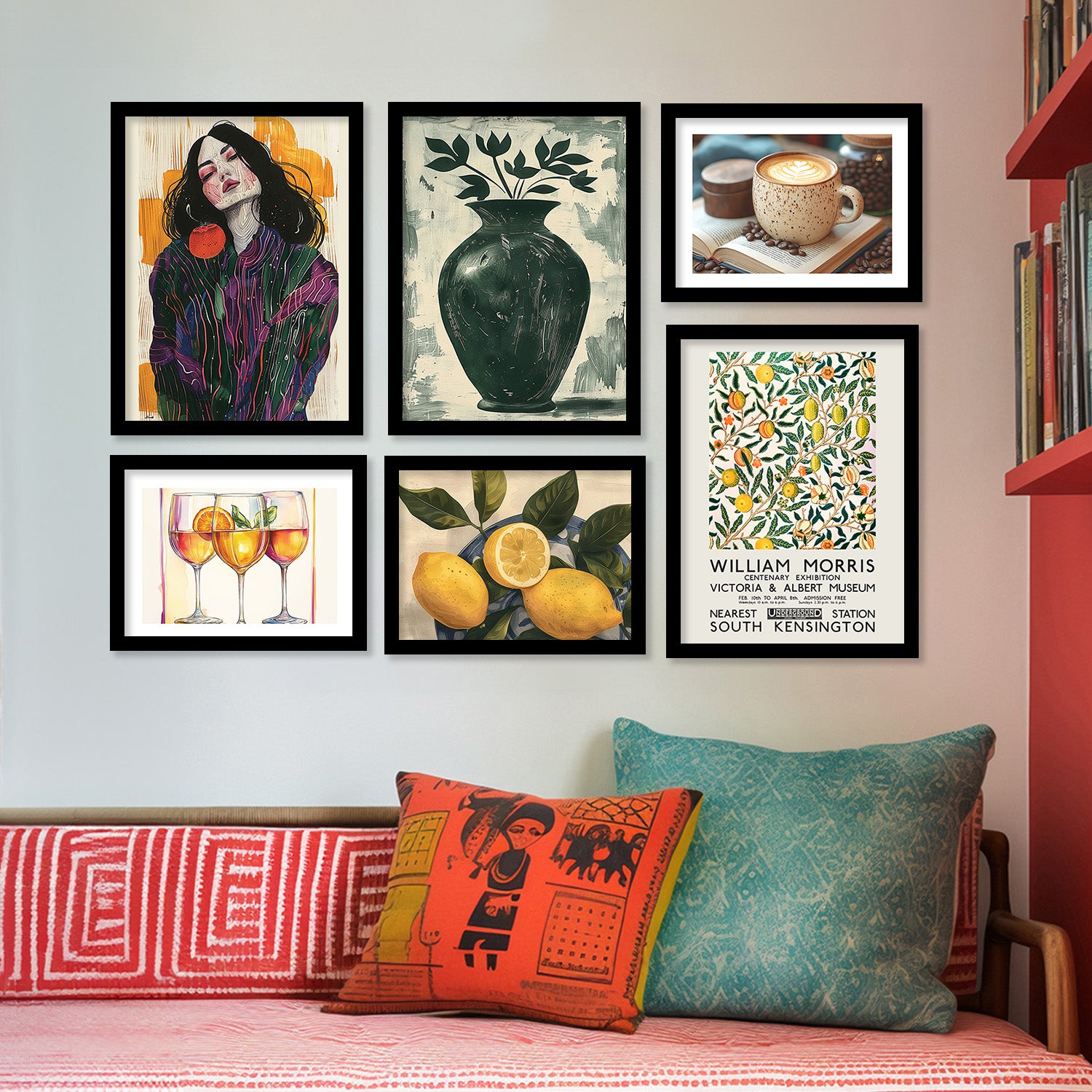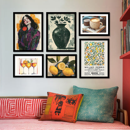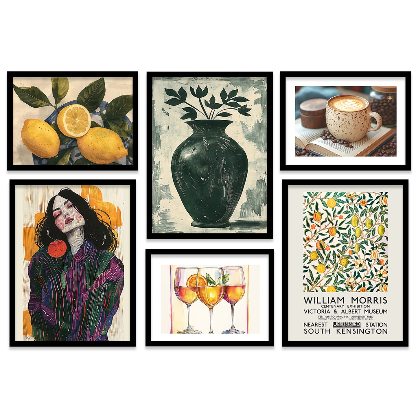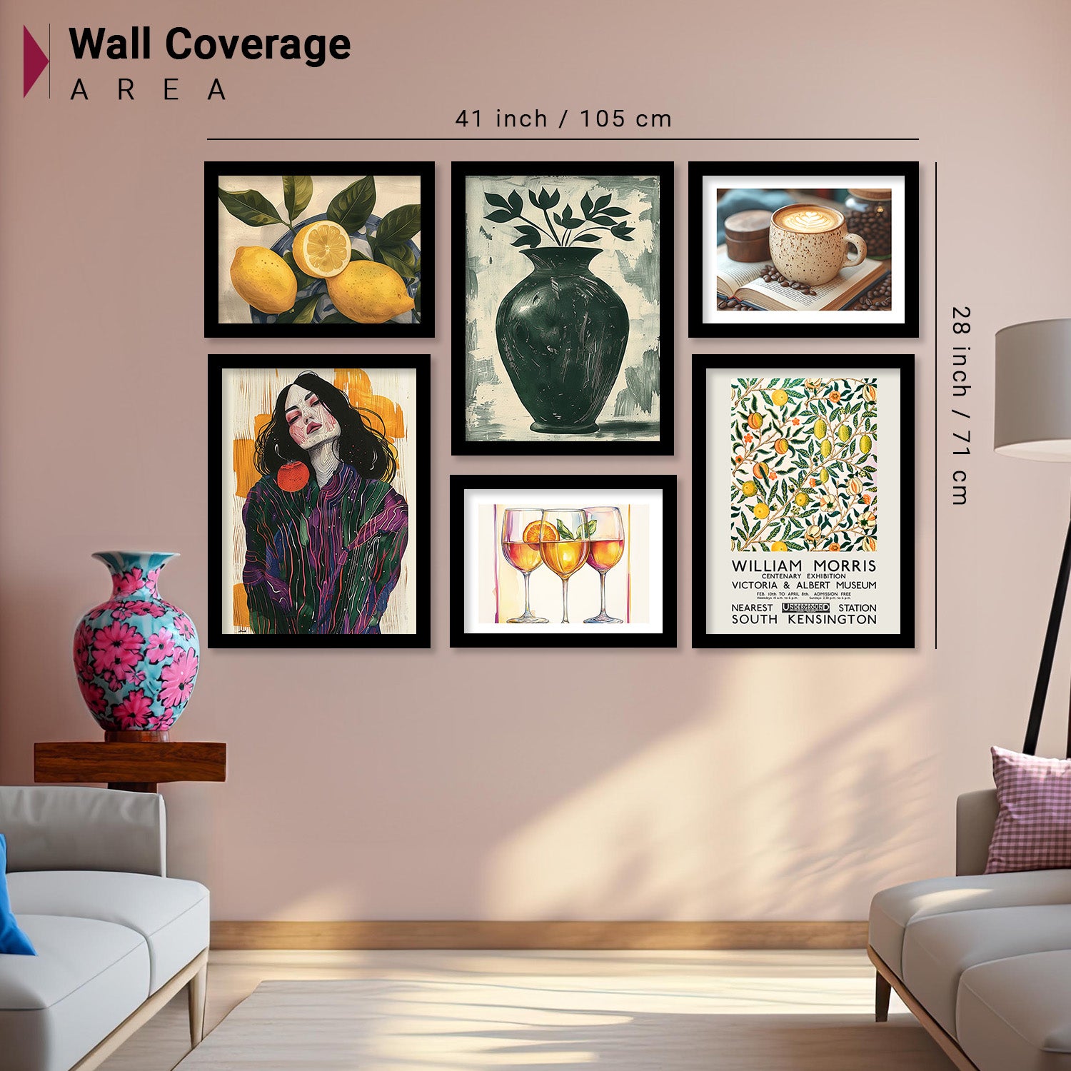 Cafe Art Prints with Frame for Living Room Bedroom Home and Office Wall Decor Set of 6