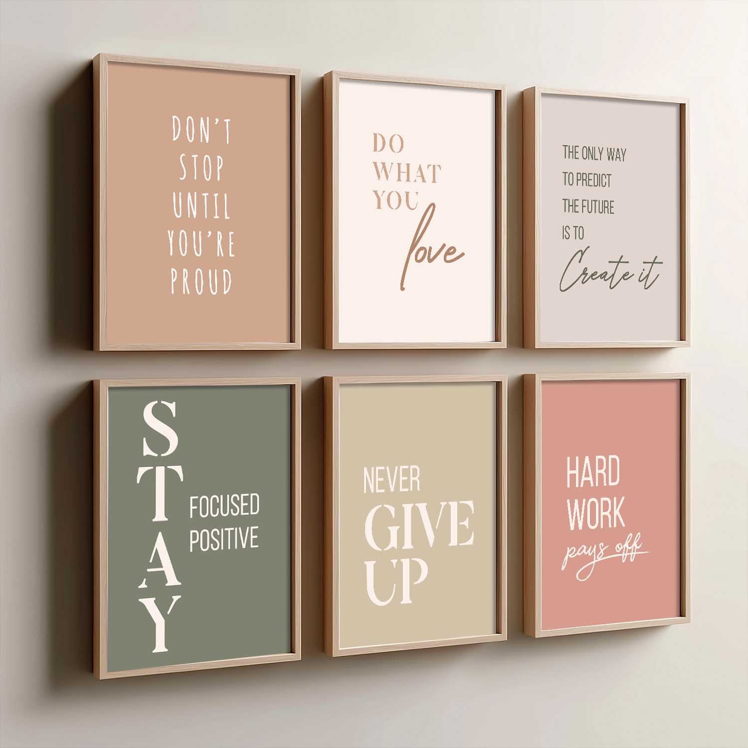 Motivational Quotes Posters with Frame for Office Living Room Bedroom Study Room School Wall Decor Set of 6
